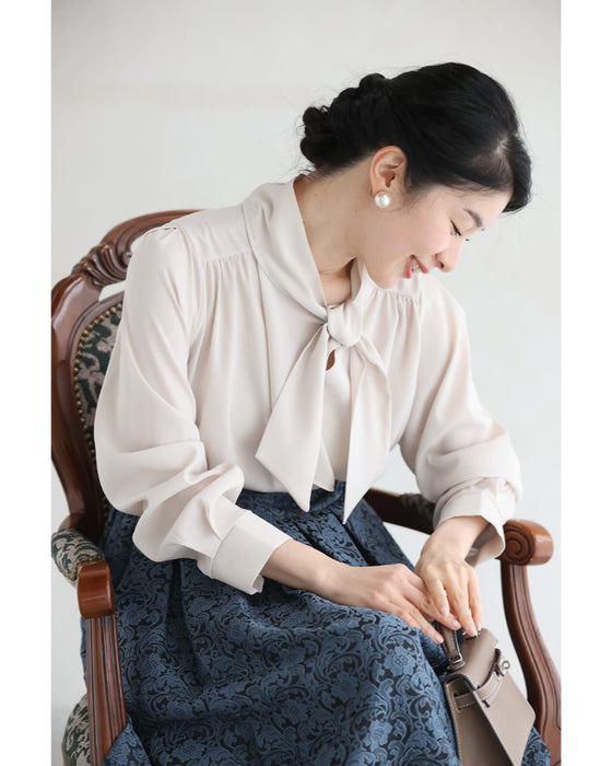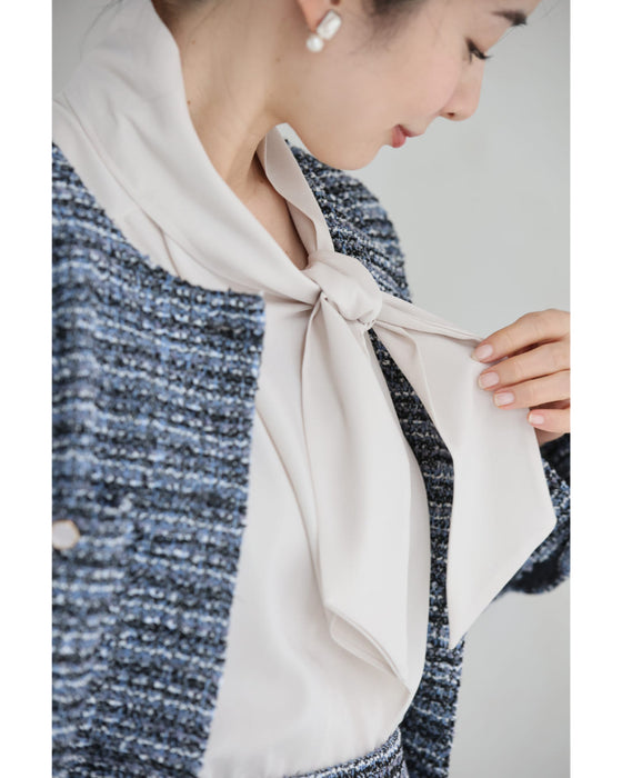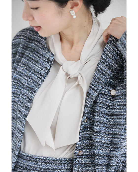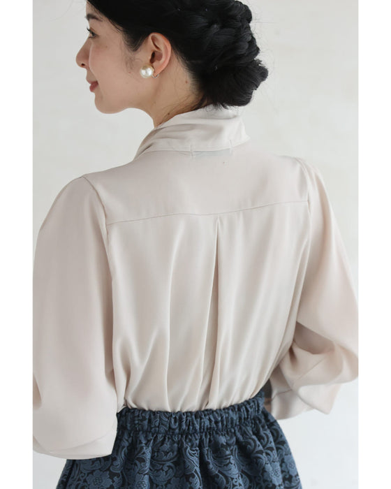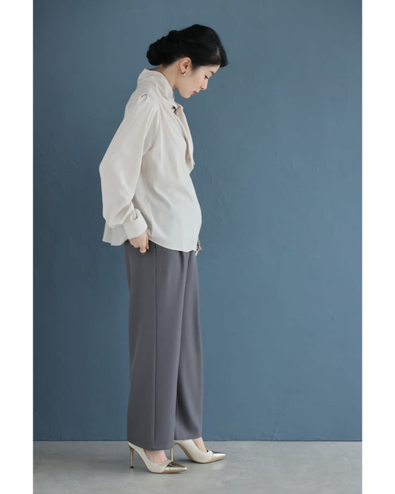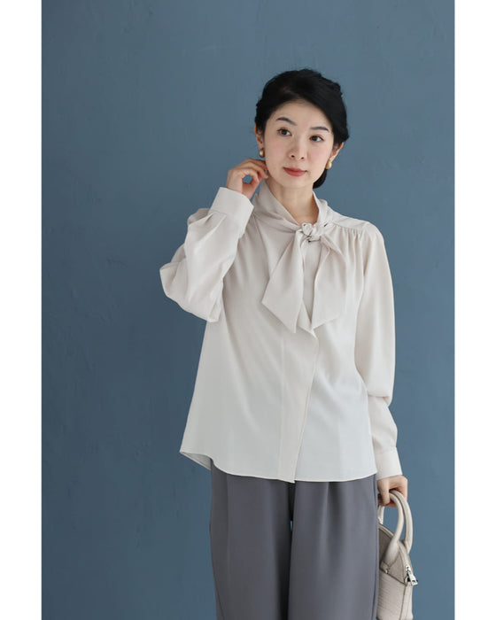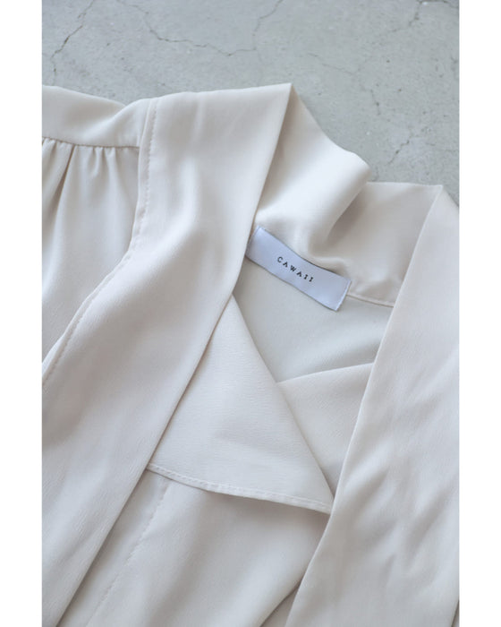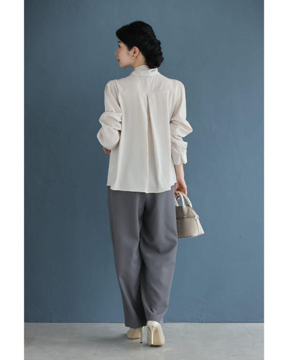 胸元は立体的にふんわりと仕立てられており、女性らしいシルエットを美しく際立たせます。リラックス感がありながらも上品なデザインなので、オフィスからお出かけ、特別なシーンまで幅広く活躍。