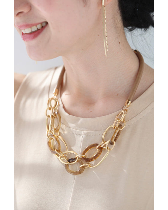 円と円が繋がる首元華やぐ2連チェーンネックレス