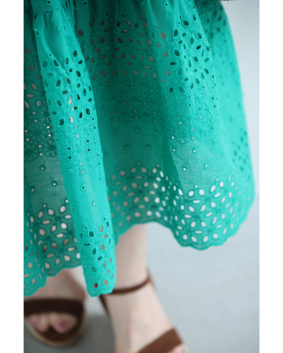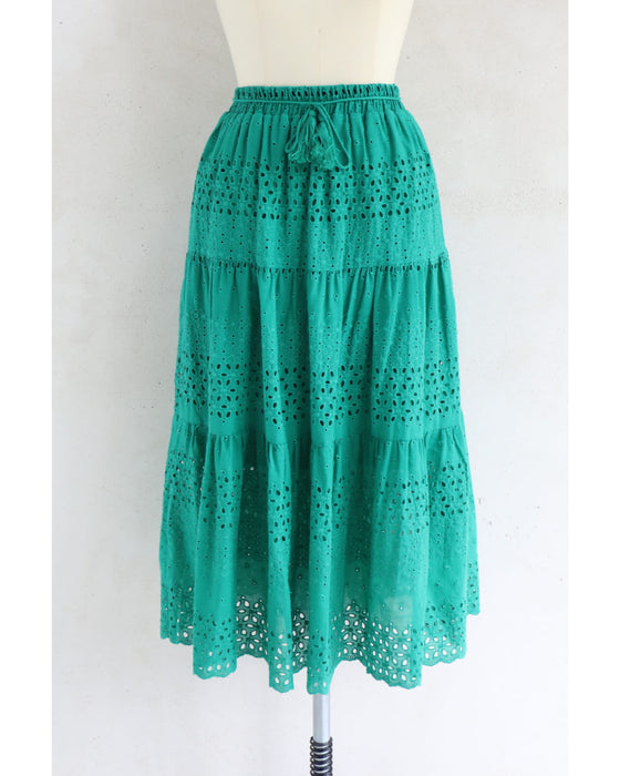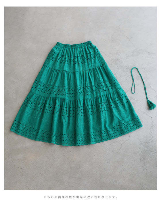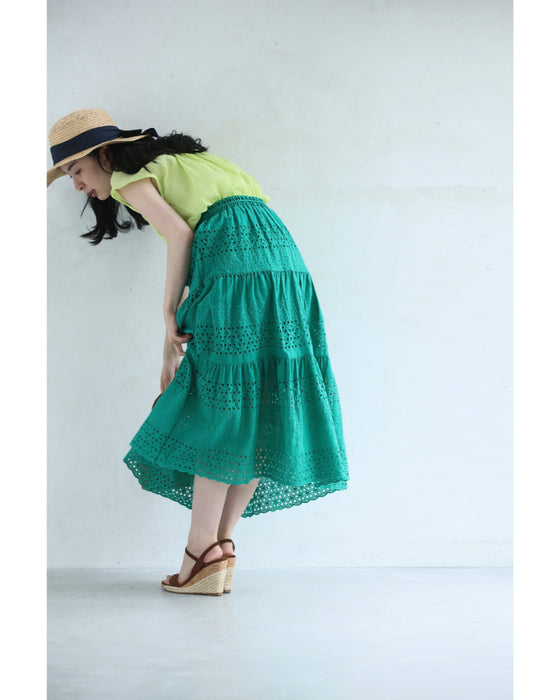 鮮やかグリーンのパンチングレースミディアムスカート(紐付き)