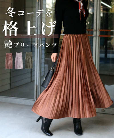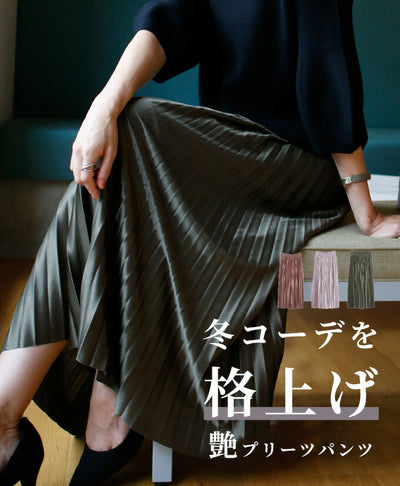 コーデを格上げ艶プリーツパンツ
