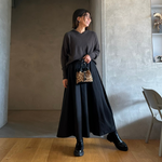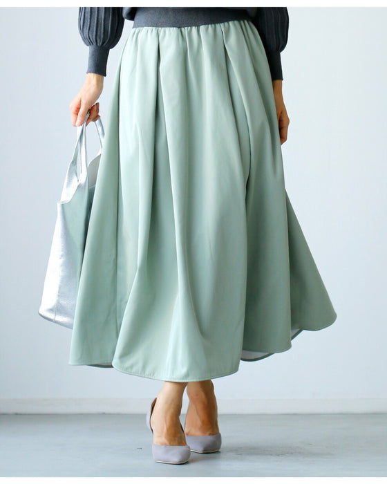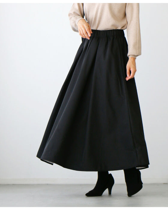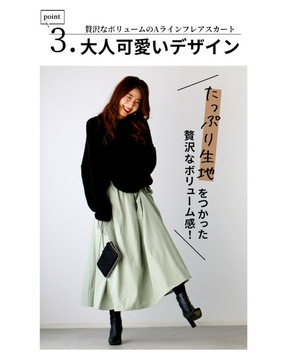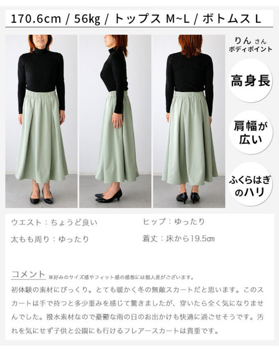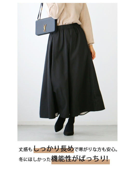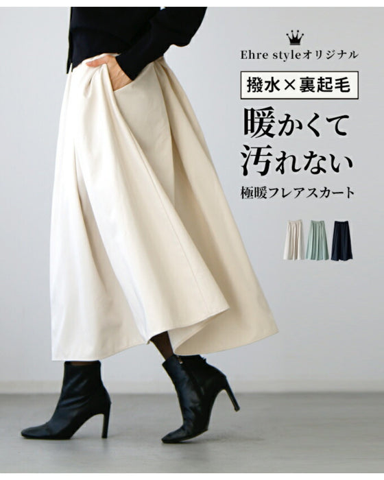 Stain-resistant, extremely warm, brushed-lined skirt, water-repellent, A-line, flared, women's bottoms, long skirt, loose, warm, elastic waist, elastic, back elastic, pockets, plain, brushed, cold protection, cold protection, one size fits all