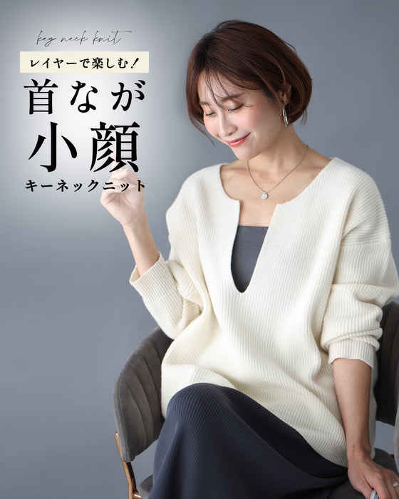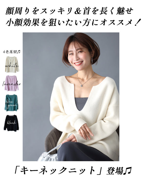 This is a loose keyhole neck knit that is recommended for people in their 40s .