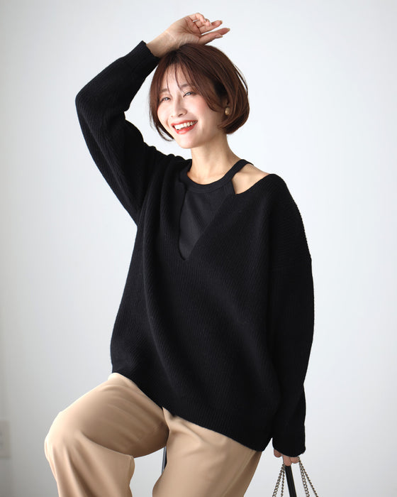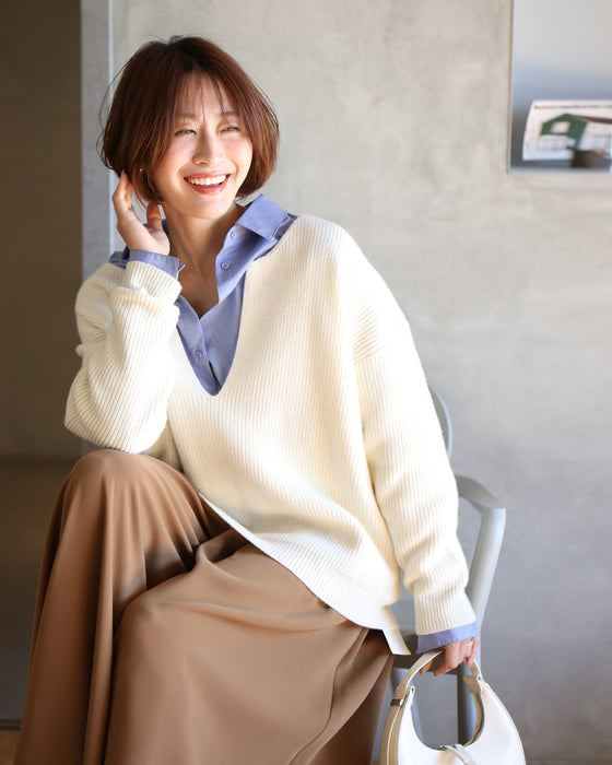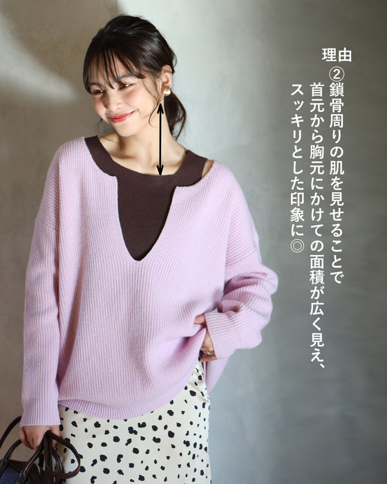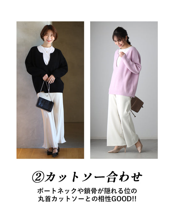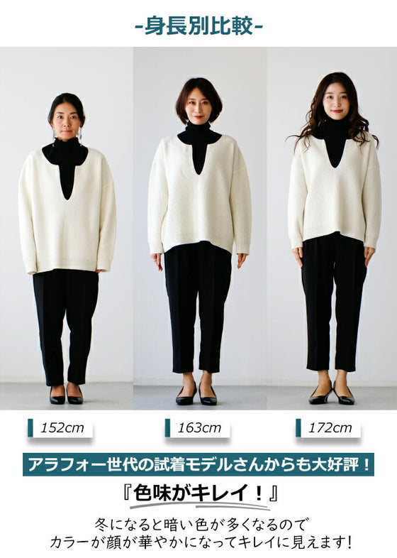 Depending on the colour of the innerwear you wear underneath, you can completely change the impression, so it's a beautiful knit that you can enjoy wearing in a variety of ways without getting bored.