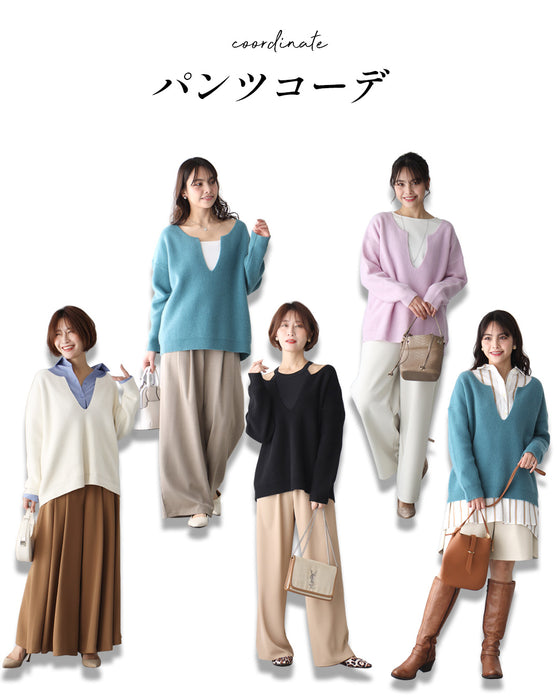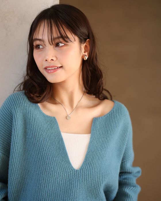 Tops, Knit, Knit tops, Key neck knit, Key neck, Layered, Beautiful, Long sleeves, Relaxed, White, Lavender, Blue green, Black, White, Black, Blue, Plain, Simple, Free shipping, Ehre style, Style, Ehre style