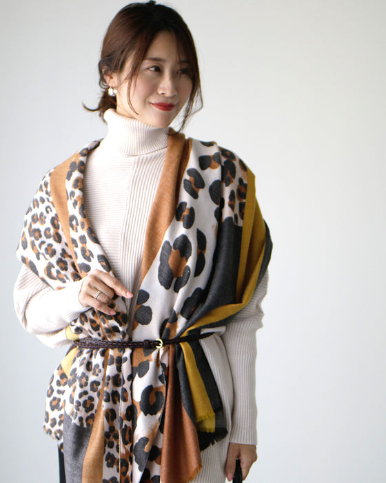 Stole color scheme Leopard print color Large stole Muffler Shawl Pattern Large Clean Casual Mocha Gray Yellow Mocha Gray Yellow Brown Ash Yellow Autumn Winter Women's Fashion Ehre style Style Ehre style Small size OK Ehrestyle