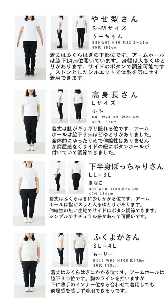 | Size | 肩幅 | 身幅 | 着丈 | 前下がり | アームホール |