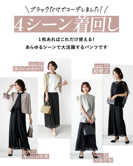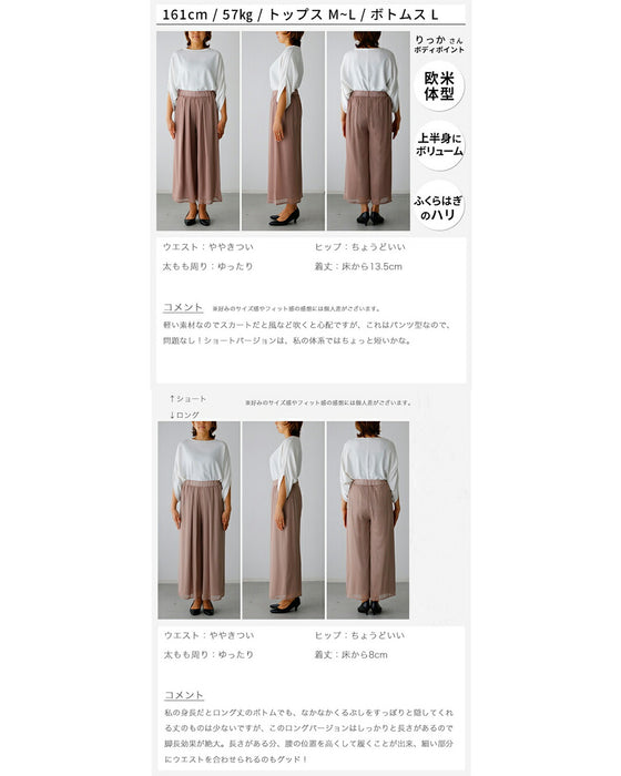 Gaucho pants, slimming, wide pants, flare pants, pants for women, pants for women, pants dress, stylish, 50s, 40s, 30s, summer, spring, spring/summer, autumn, winter, chiffon, spring clothes, chiffon pants, formal, neat, office casual, suitable for petite people, Ehrestyle, free size, short length, long length