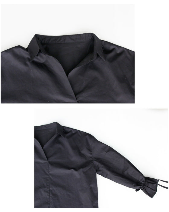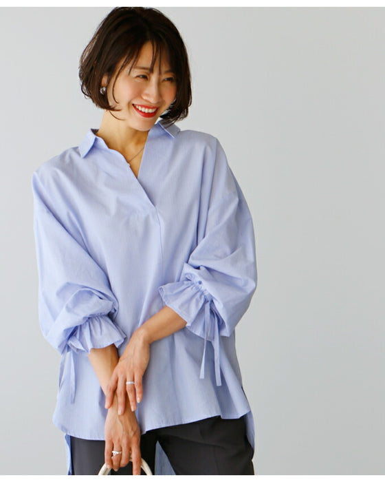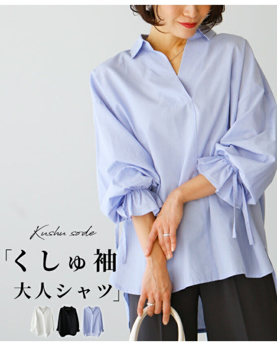 Office casual blouse, crinkled sleeves, shirt, 3/4 sleeves, blouse, white, black, patterned, work, top, spring, summer, fall, sleeves, balloon, ladies, neat, elegant, suitable for petite people, Ehrestyle, free size