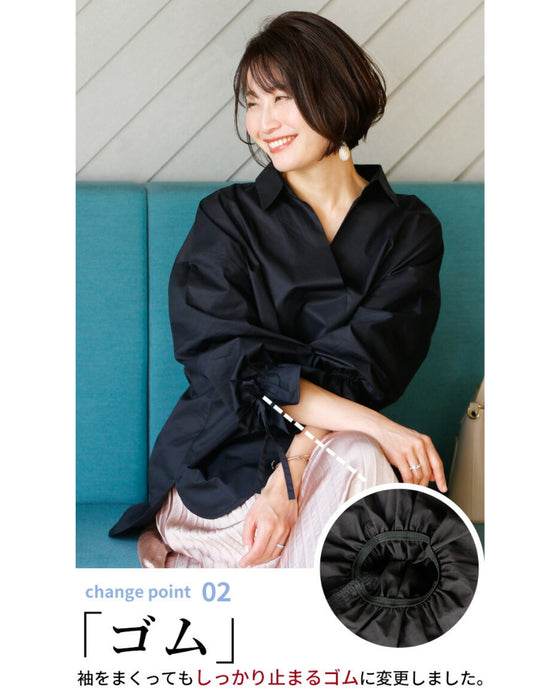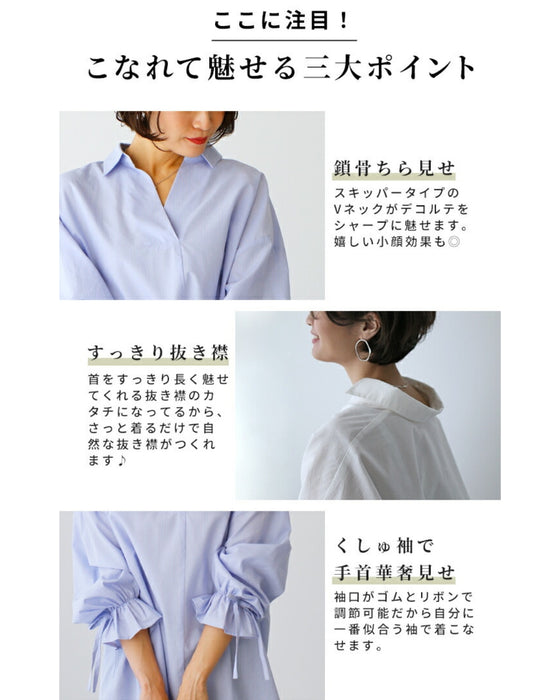 1. The skipper-type V-neck shows off your collarbone and gives your décolleté a sharp look.