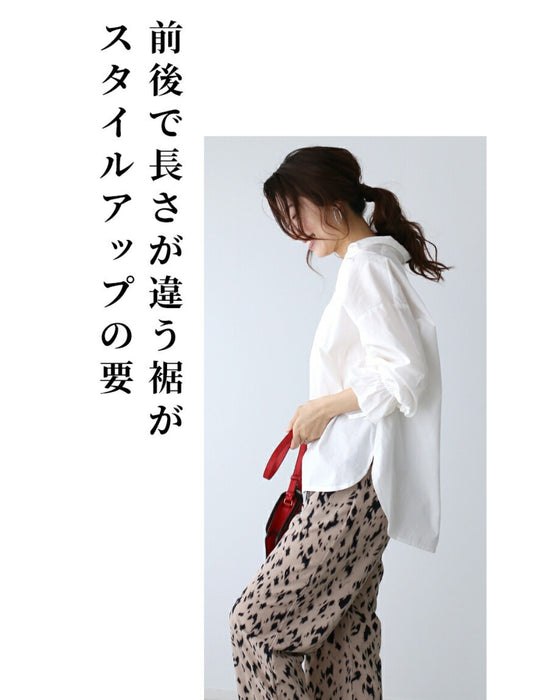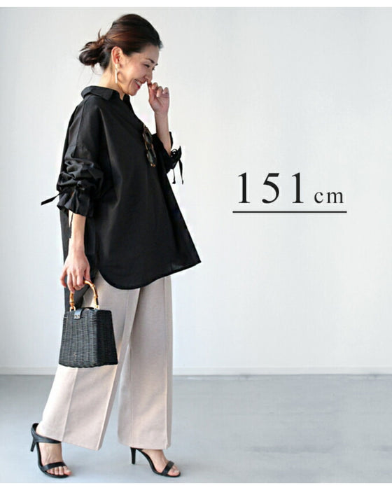 If you tuck in just the front hem, the gathered waist will give you a higher waist effect. You can also leave it out to enjoy a relaxed fit.