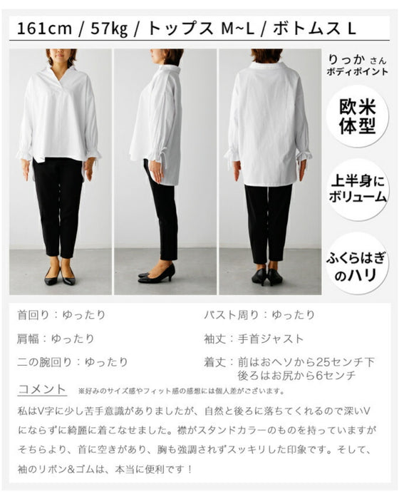 The loose sizing makes it suitable for all body types, from staff members who are 151cm tall to customers who usually wear LL size.