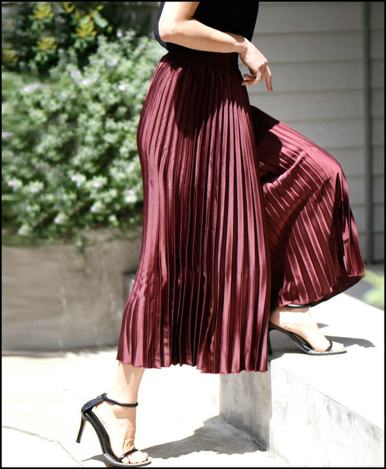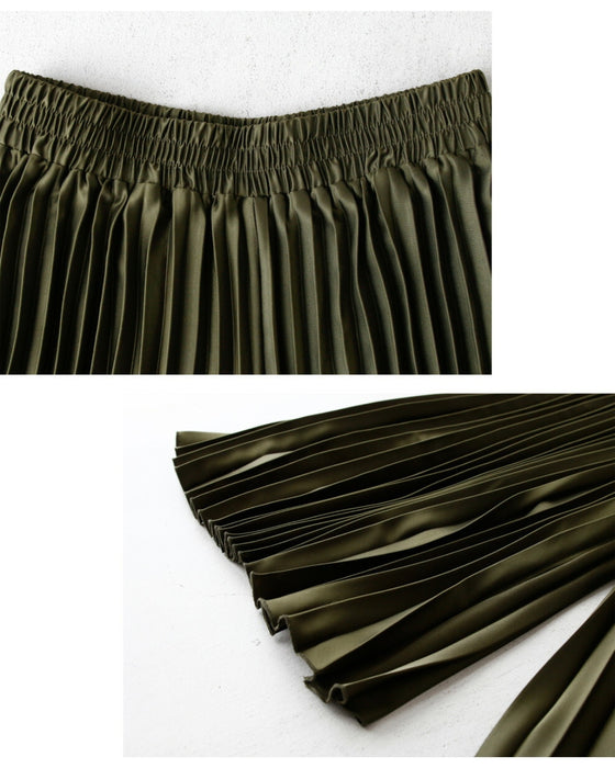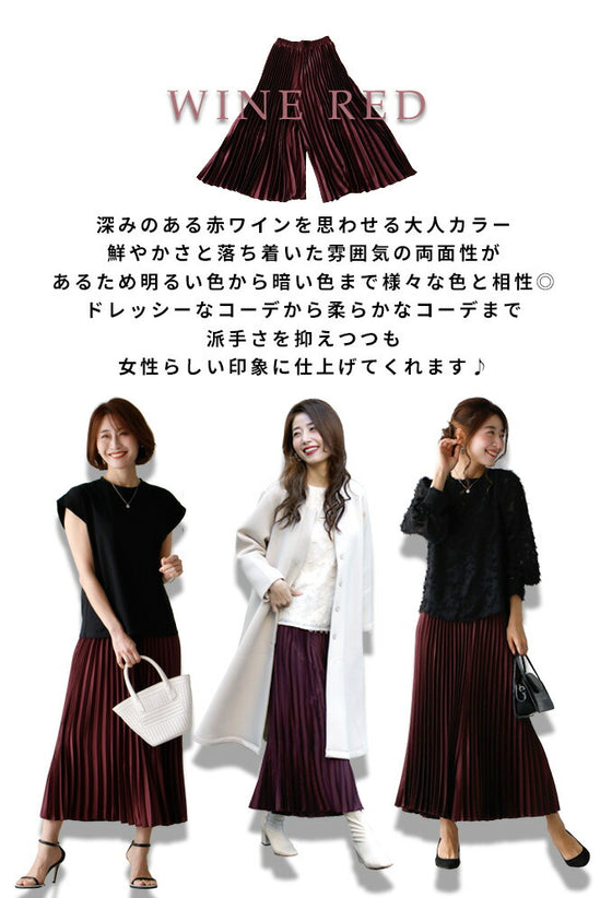 Shiny pleated pants, glossy, shiny, slightly glossy, wide pants, skants, pleated pants, elastic waist, women's fashion, free size, spring, petite, OK, Ehrestyle