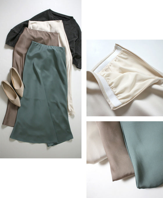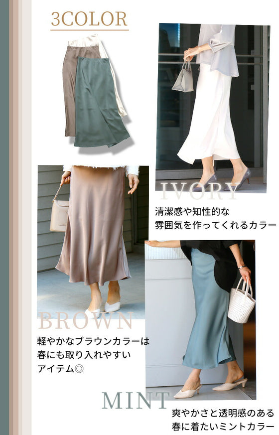 Skirt, Glossy, Maxi Skirt, Maxi Length, Bottoms, Glossy Skirt, Mermaid, Long Length, Flared, All Elastic, Slight Gloss, Side Zipper, Ivory, Brown, Mint, Flared, Ehre Style, Style, Ehre Style