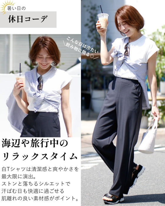 Wide pants for women, beautiful bottoms, for women in their 40s, beautiful legs, center press, high quality, not see-through, cool to the touch, UV protection, hand washable, made in Japan, simple, elastic back, spring/summer, spring, summer, fall, Ehre style, center line, spring, summer, fall, one size fits all