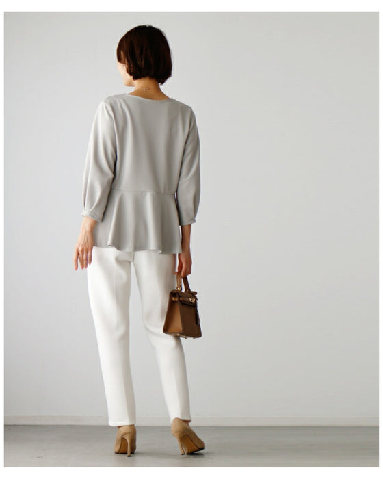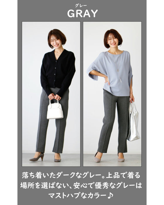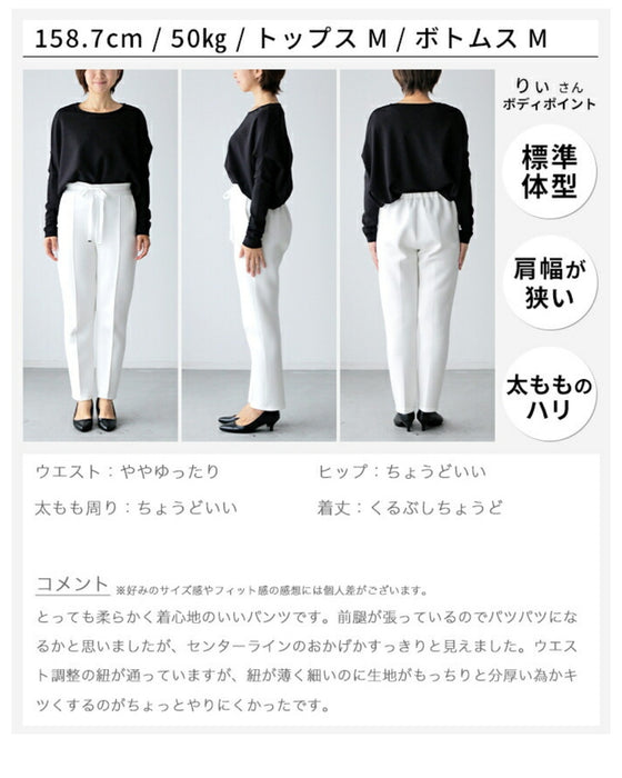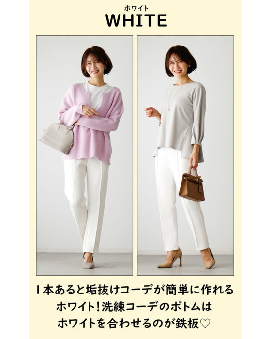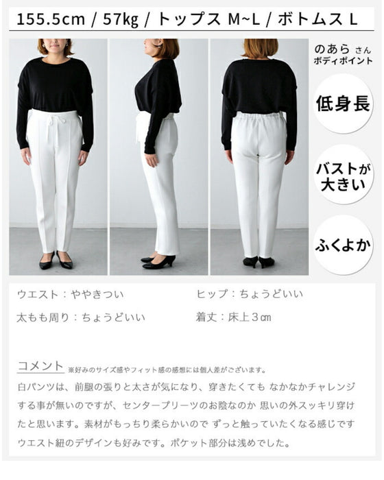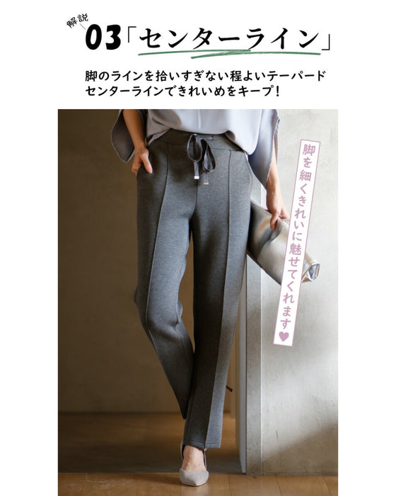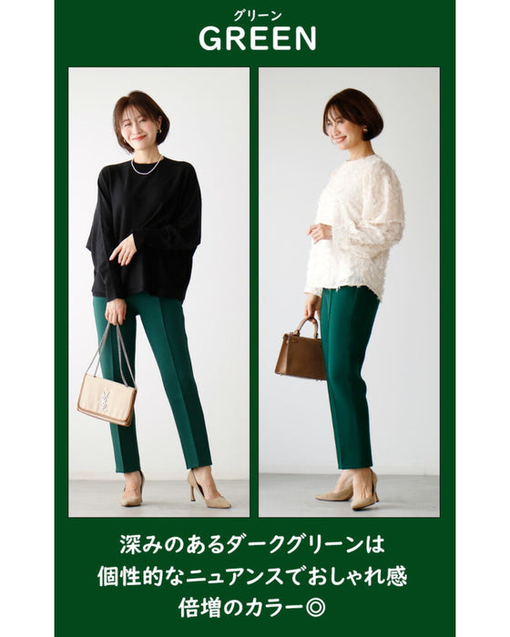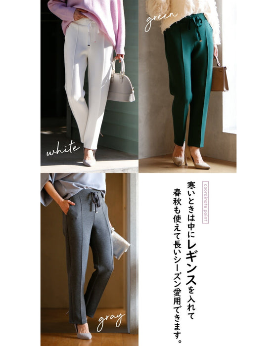 Pants, bottoms, tapered, tapered pants, center line pants, beautiful legs, stress-free, comfortable, beautiful look, stretchy, center line, green, white, gray, white, green, gray, elastic waist, free shipping, free size, Ehre style, spring, petite size OK, Ehrestyle