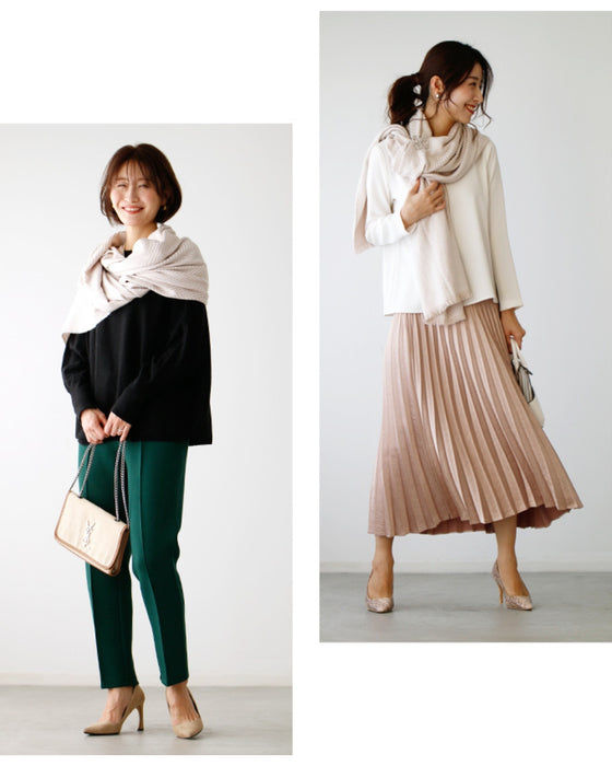 You can enjoy arranging the way you wrap it and the size changes depending on your outfit.
