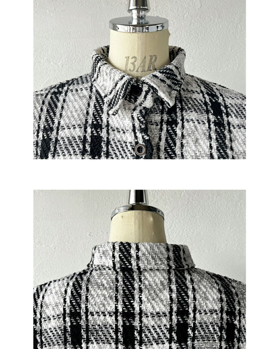 ■ A light gray print is applied over the rough check pattern in a painted style.