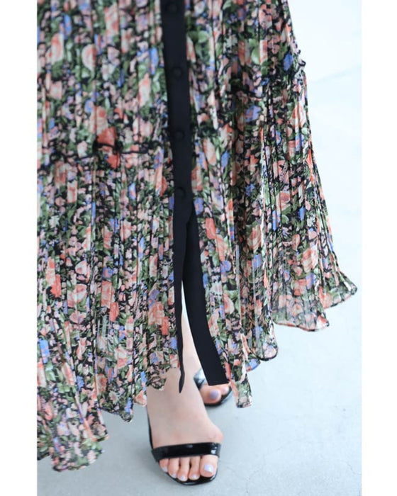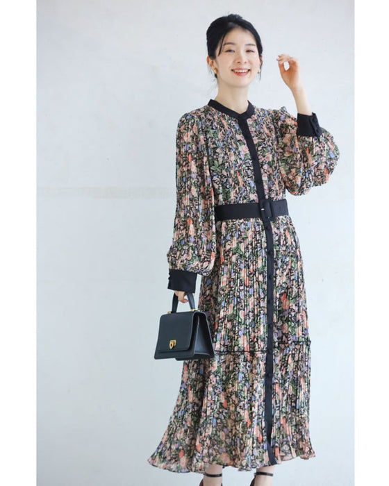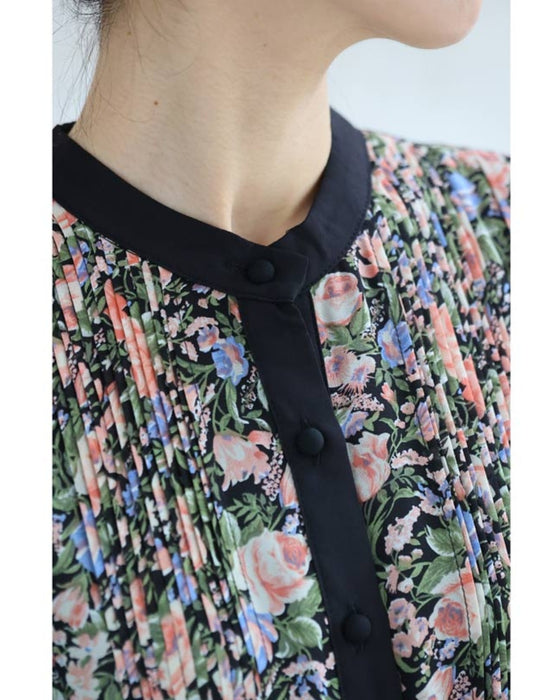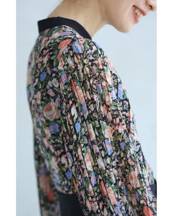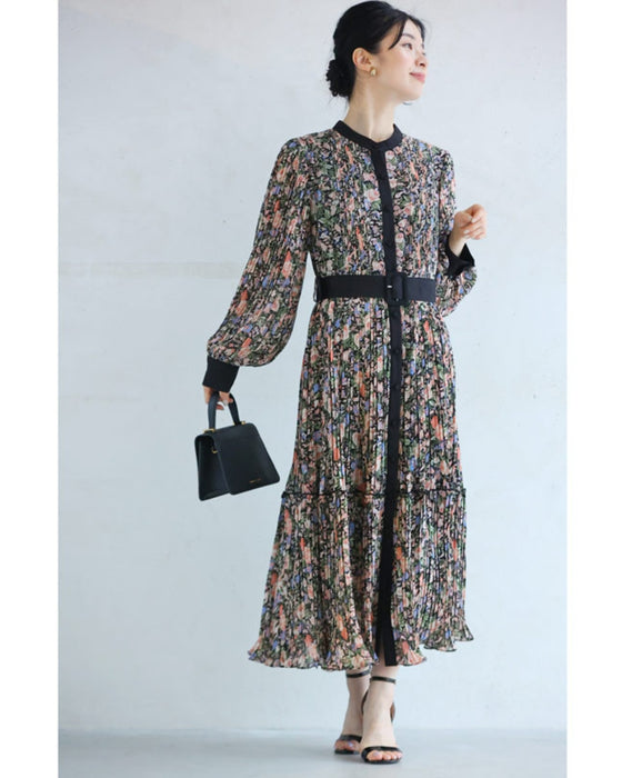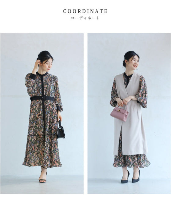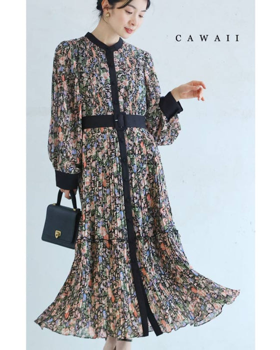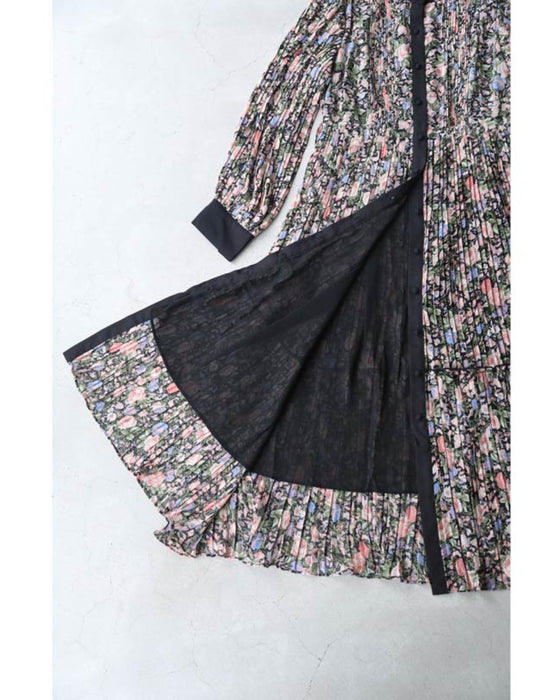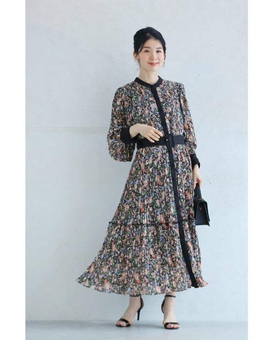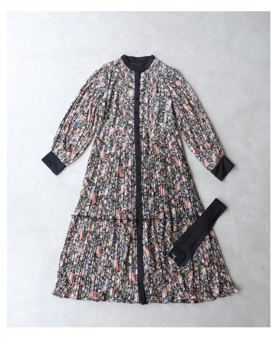 The pleated design gives the dress a light, airy feel, and the fluttering hem creates a feminine and neat impression. The small floral pattern makes it instantly gorgeous when worn.