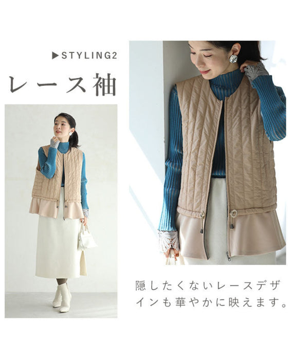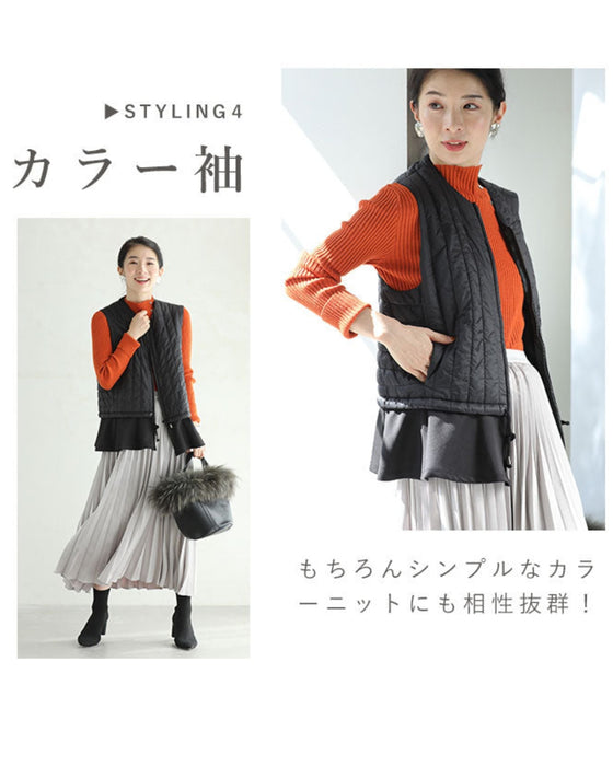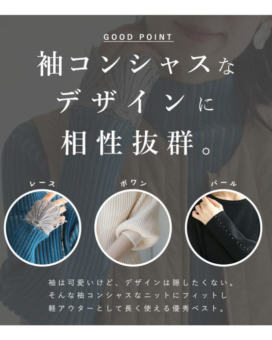 Perfect for sleeve-conscious designs. The sleeves are cute but you don't want to hide the design. This is an excellent vest that fits with sleeve-conscious knitwear and can be used for a long time as a light outerwear.