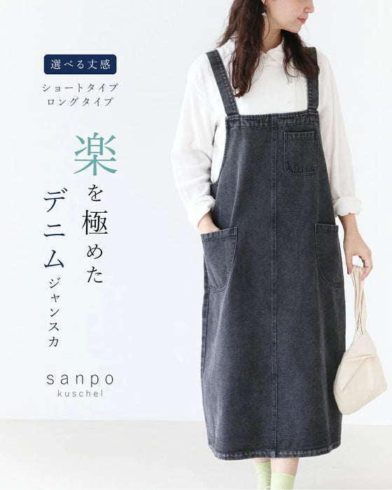 (Long length now available) The ultimate in comfortable denim jumper skirts