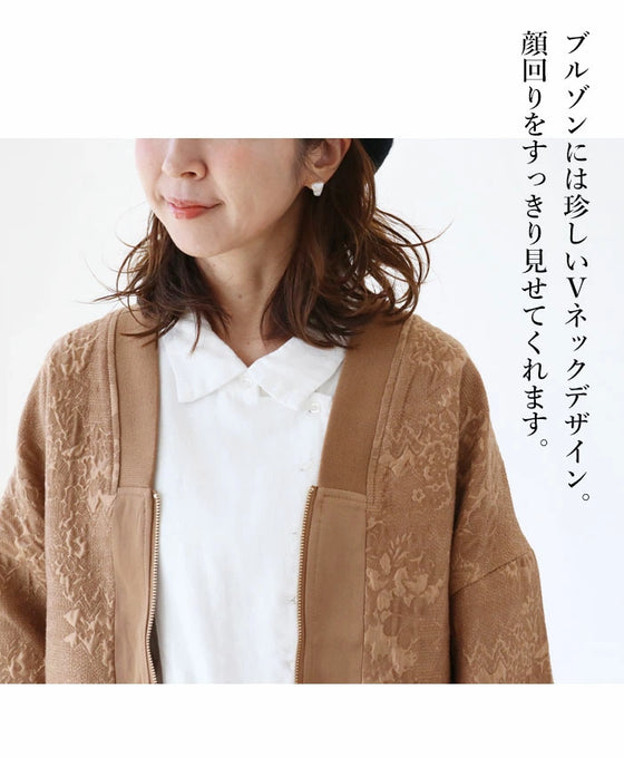 Puffy fabric woven pattern blouson