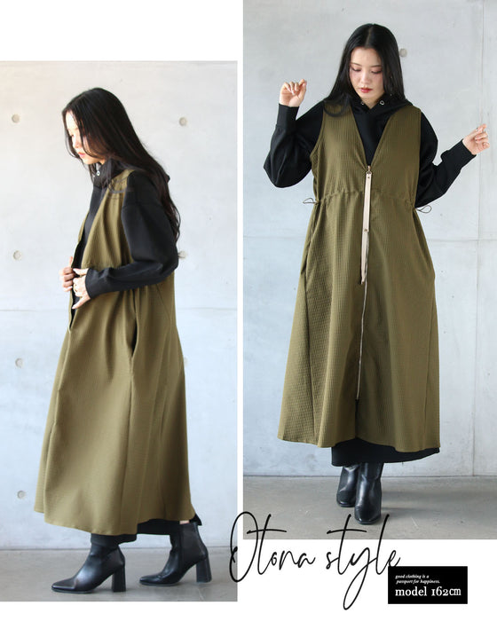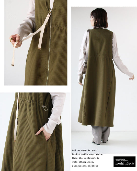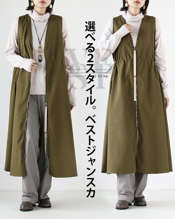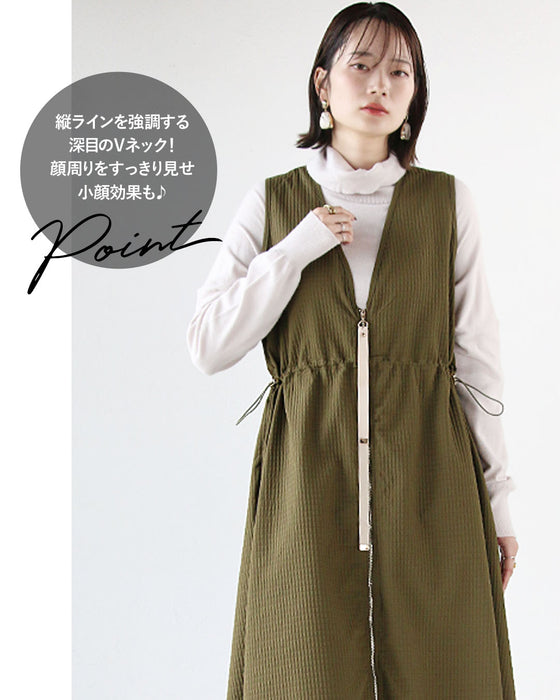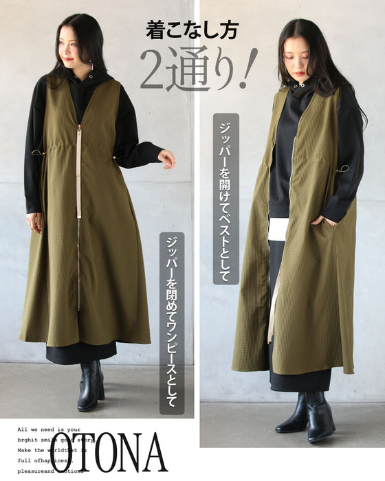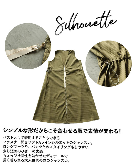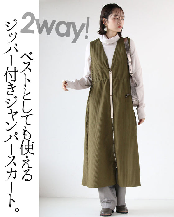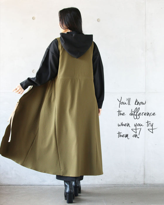 ■As a dress or as a vest... This A-line vest jumper skirt can be worn in two different styles. Just throw it on and it will cover your figure. The fabric is simple yet subtly three-dimensional. The bumpy texture makes it stylish!