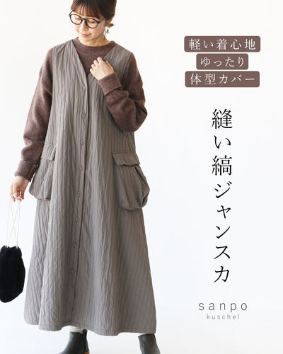 Lightweight, comfortable, loose fit, figure-covering striped jumper skirt