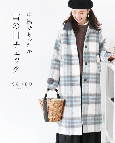 The check pattern features gentle colors and a combination of soft milky blue and light gray, making it a bold yet not too flashy color scheme perfect for the season.