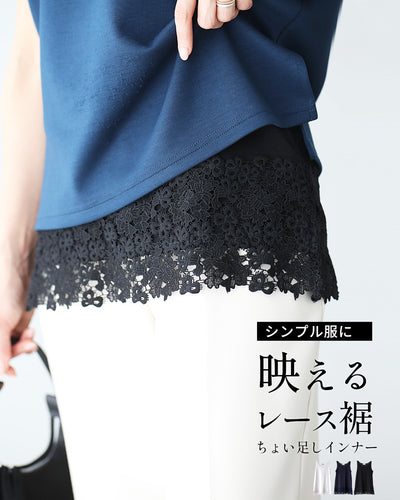 インナー タンクトップ 映える レース 裾ちょい足し レースインナー ホワイト ネイビー ブラック white navy black 白 黒 濃紺 裾レース 刺繍 お洒落 丸首 柔らかい フリーサイズ オールシーズン レディース ファッションEhre style スタイル エーレスタイル