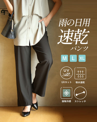 パンツ ボトムス ワイドパンツ UVカット 長ズボン パンツ サイズ展開 M L LL ポケット 吸水速乾 ゆったり 高機能楽 丸洗い 伸縮性 ブラック Black 黒 春 夏 秋 オフィス カジュアル キレイめ ボトム レディース ファッション Ehre style スタイル エーレスタイル