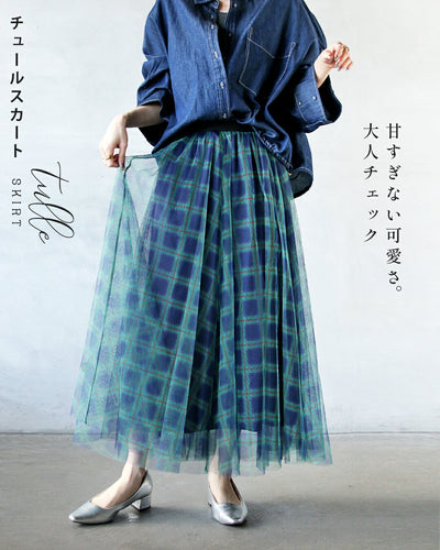 甘すぎない可愛さ大人チェックのチュールスカート