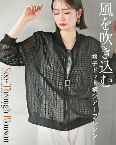 ■シアー素材の透け感で暑い季節も涼しげに合わせられるブルゾン。