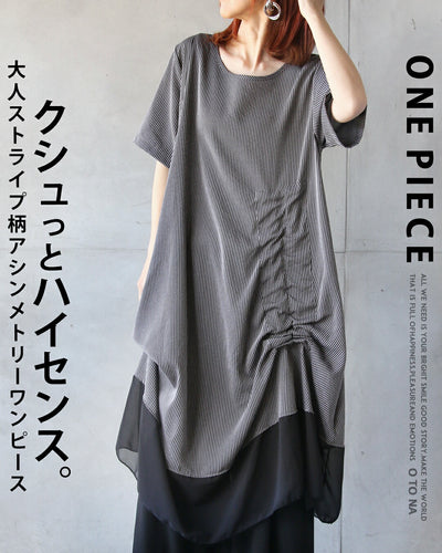 クシュっとハイセンス。大人ストライプ柄アシンメトリーワンピース