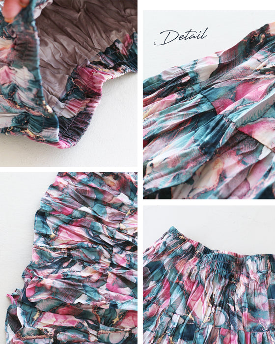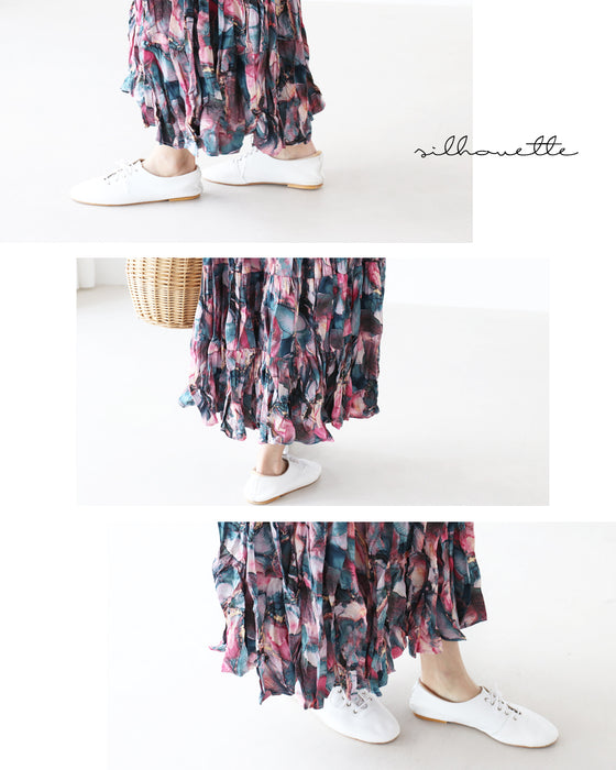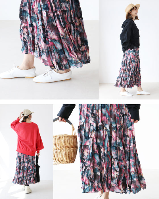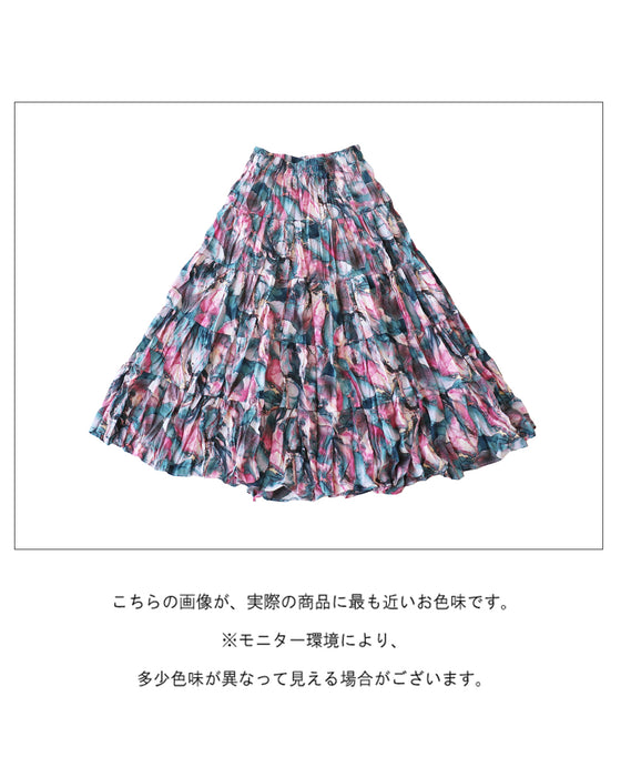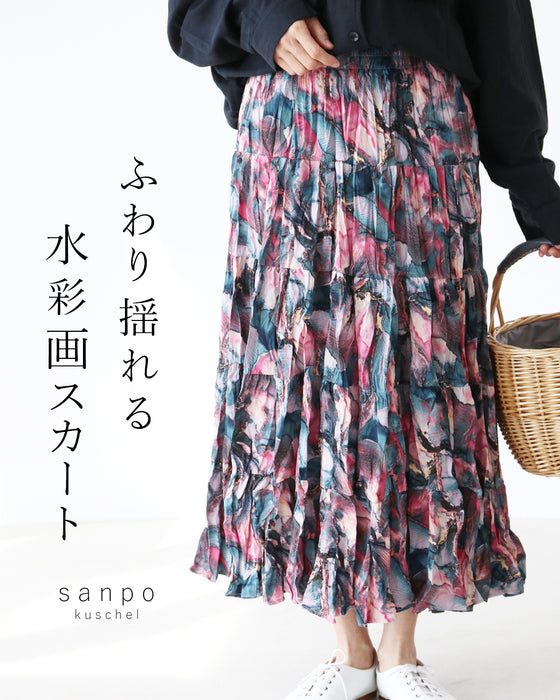 まるで水彩画のような美しいテキスタイルのスカートをご紹介します。