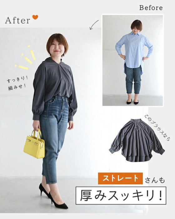 The shirring design hides the curves of the back, making your back look beautiful! The special shirring covers the curves of the back and is designed to look beautiful on people of all body types. No matter your body type, height, or age! Anyone can wear it and look beautiful from the back.