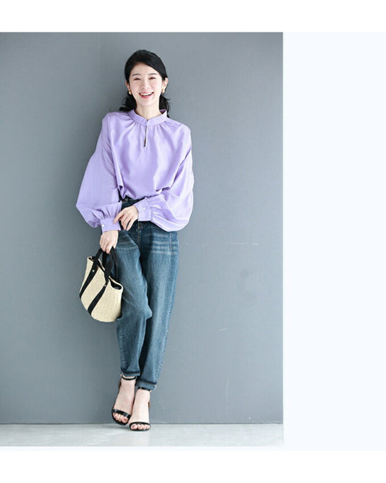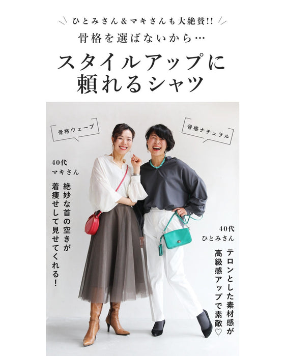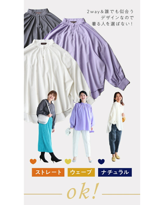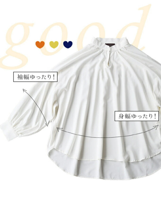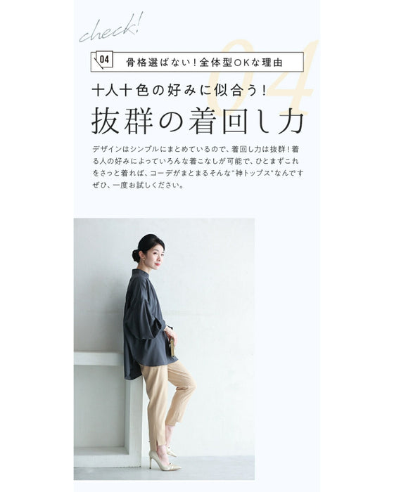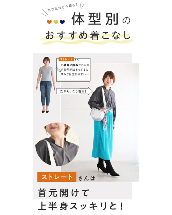 The body and sleeve widths are wide, and the silhouette is soft, so it doesn't show off your body lines! It has an exquisite silhouette that covers the areas you're concerned about without being too baggy.