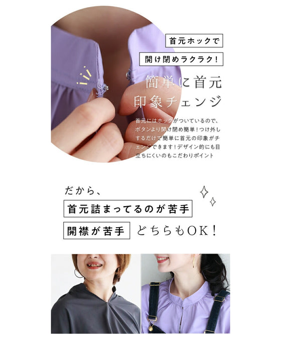 It can be worn closed or open! There is a hook on the neck, so it can be worn open or closed, making it a 2-way design! It is also recommended to wear it with the neck open and layered ◎ You can easily change the impression of your neck. Whether you don't like a tight neck or an open collar, either is OK!
