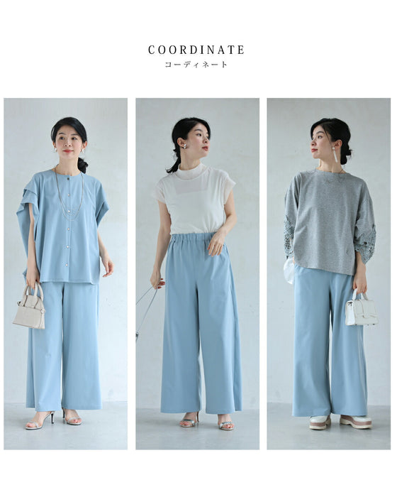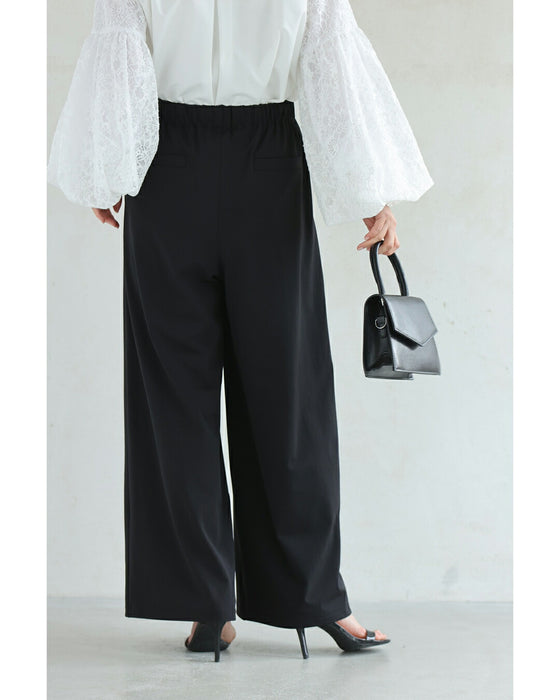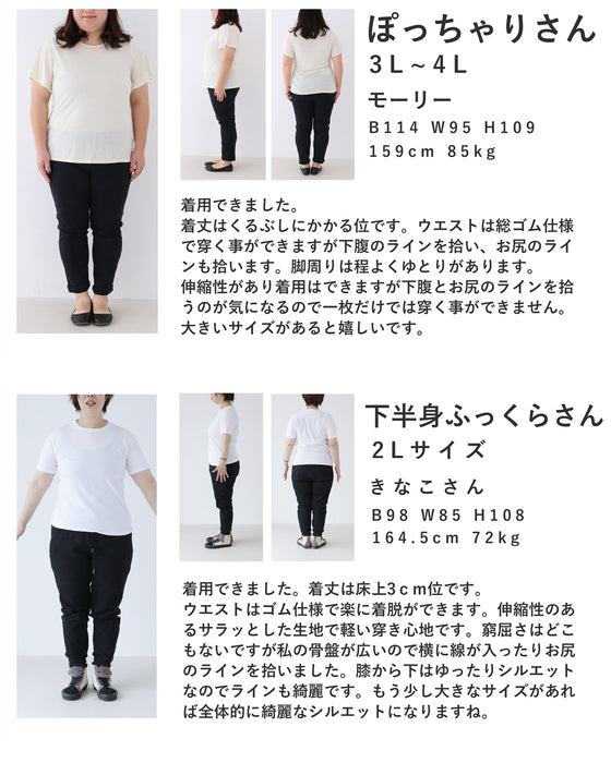 ウエスト部分はゴム仕様になっており、締め付け感が少なく、楽にフィット。体型を選ばず、どんなシーンでも快適に着こなせるのが魅力です。