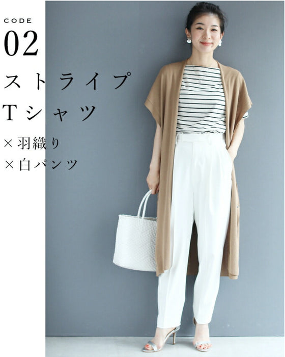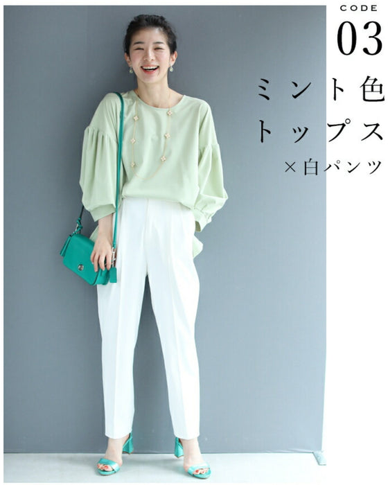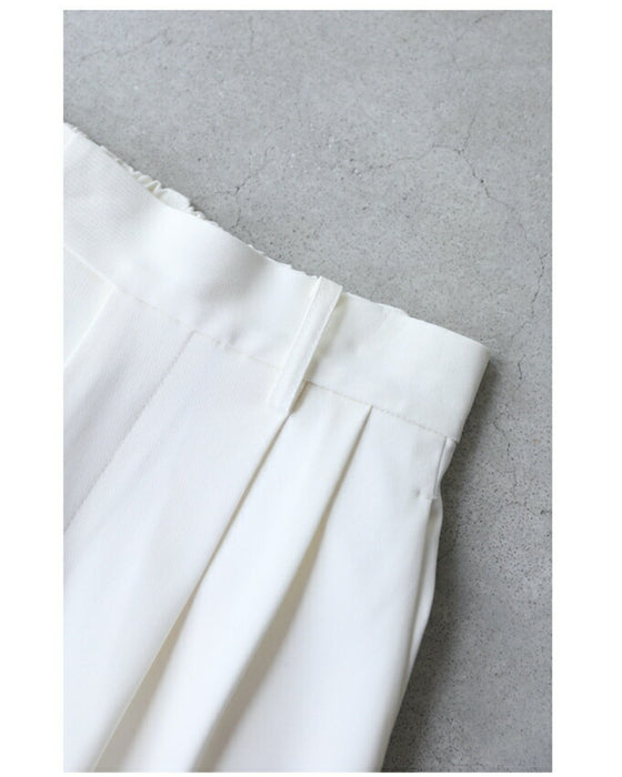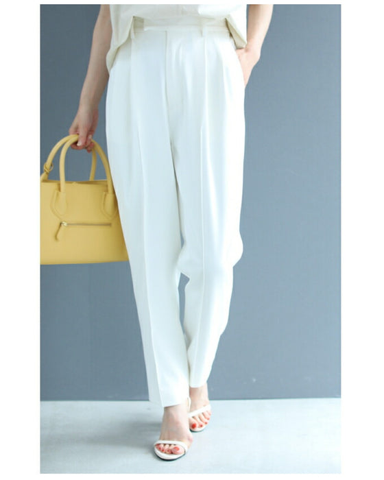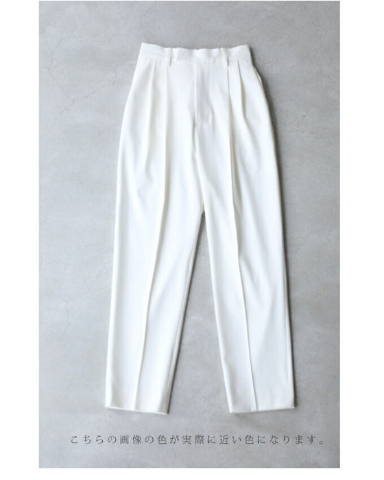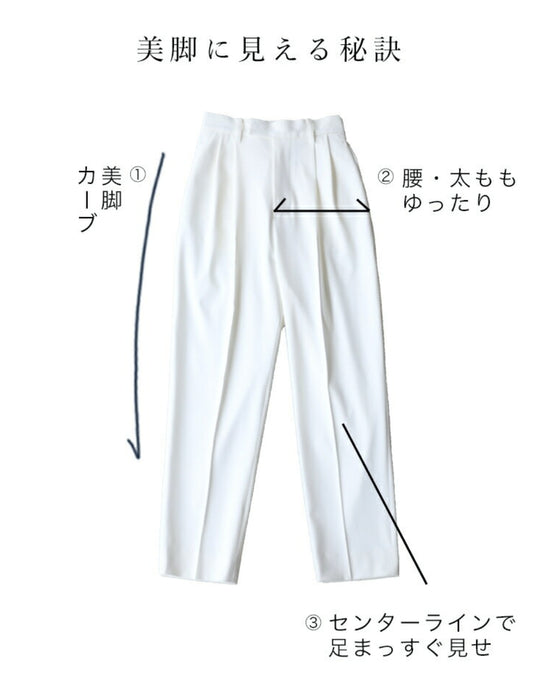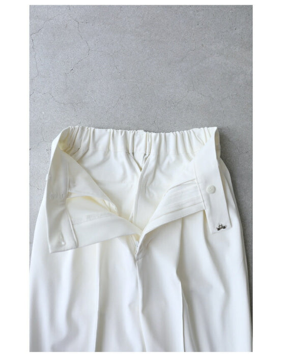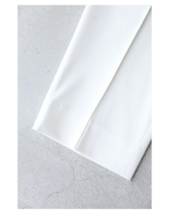 We paid particular attention to the silhouette, pursuing a shape that makes your legs look beautiful. The waist and thighs are loose, and the tapered silhouette narrows towards the hem to create a beautiful leg curve, with a strong center crease to complete the beautiful leg silhouette.