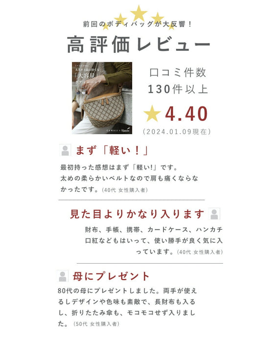 A large capacity quilted body bag that adults can carry with elegance