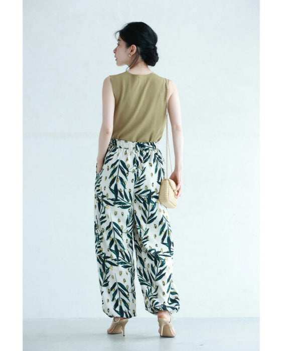 2-way design with a cinched hem. Wide pants with the feel of fireflies dancing on a summer night