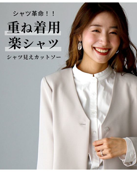 Introducing a cut-and-sew top that looks like a shirt, perfect for layering