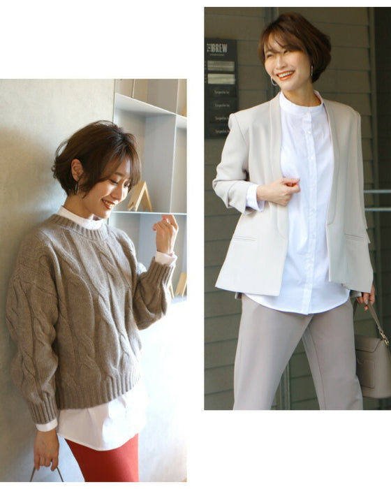 Even when paired with a cardigan, the part that is visible is still a shirt, so you can wear it stylishly with confidence!