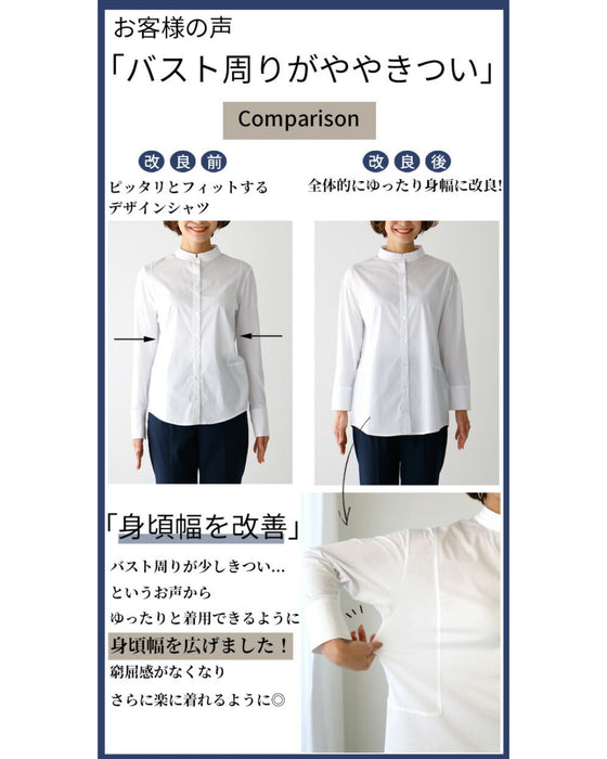 Point 3★ Collar design <br> The old-fashioned way of fitting the collar makes it look too stiff and the neck looks short, and there is a concern that makeup will get stained.