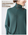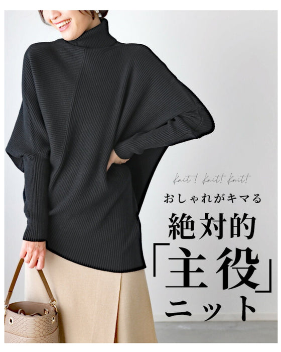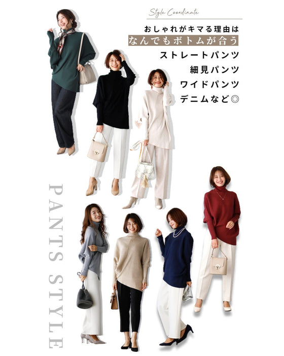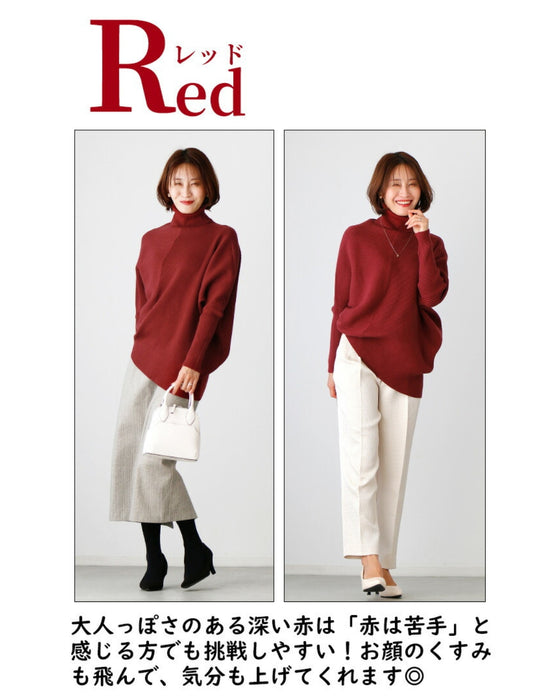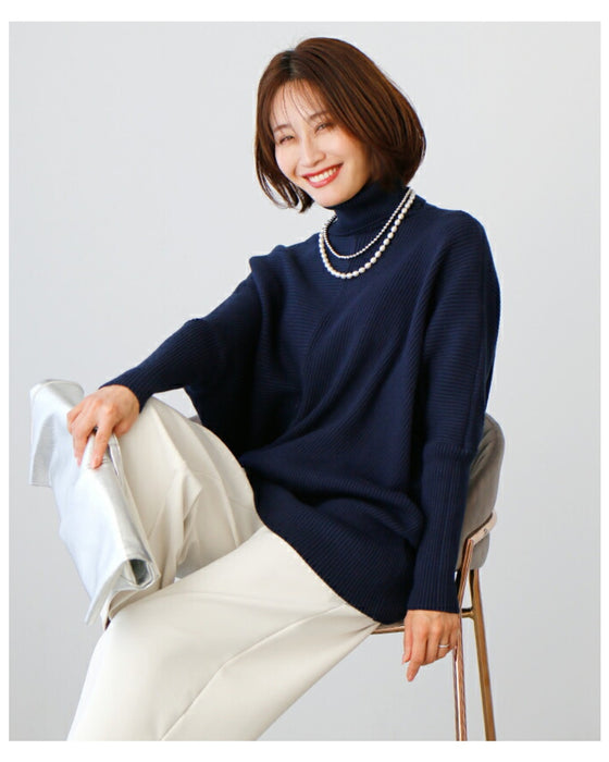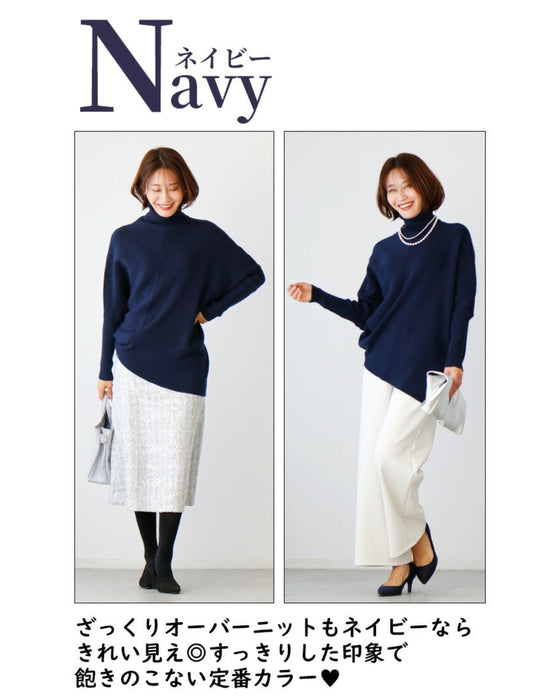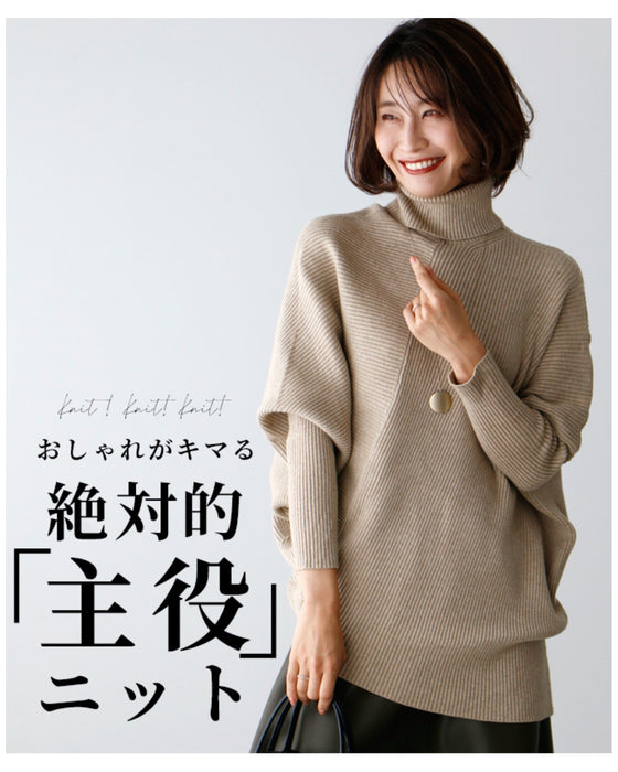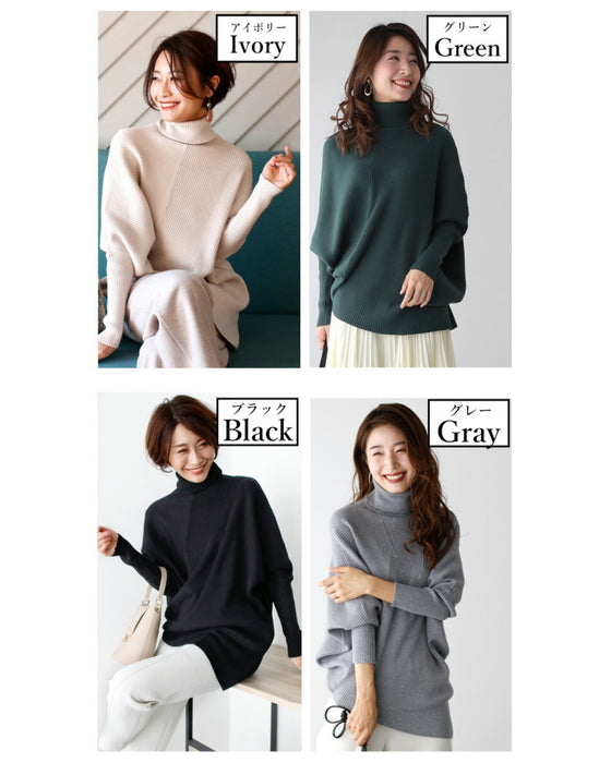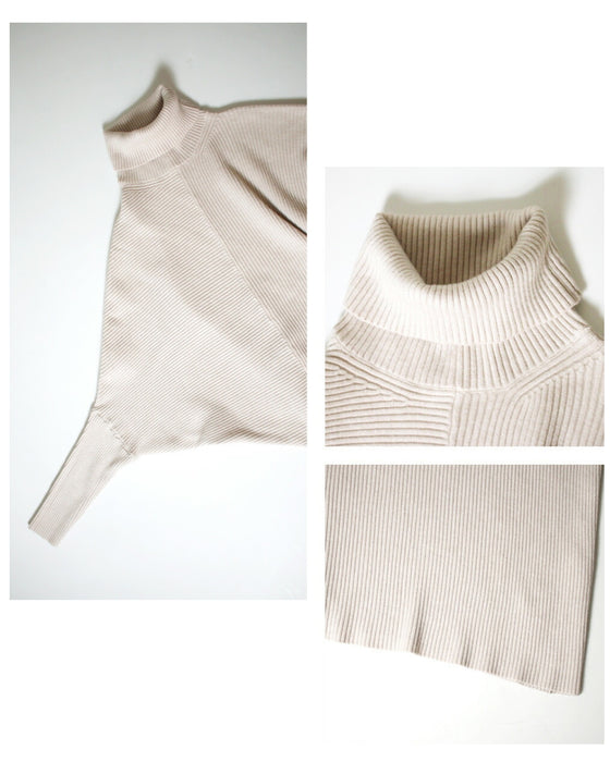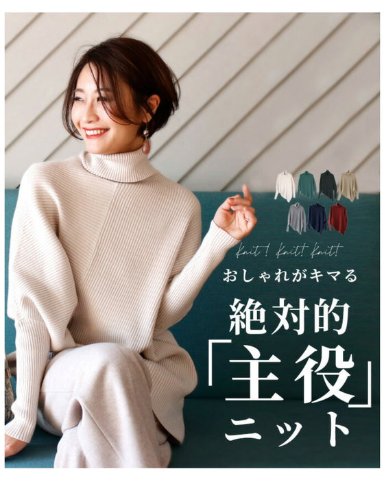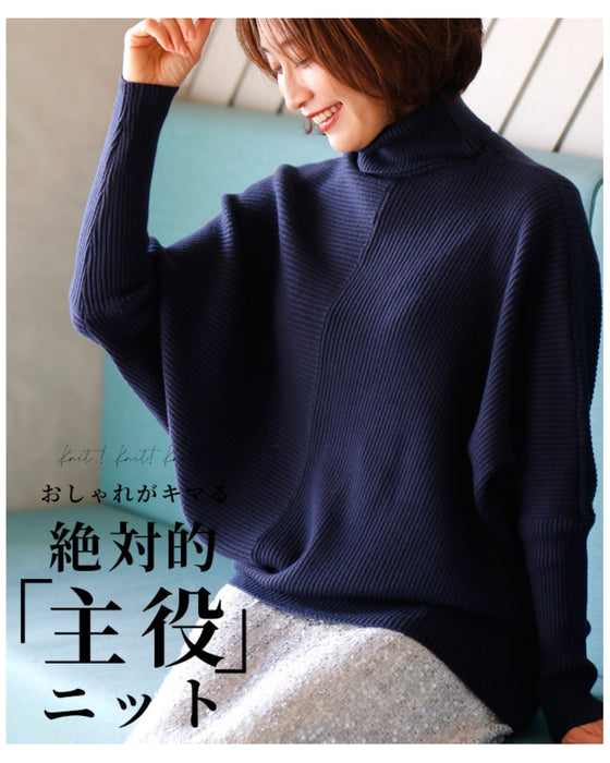 Asymmetrical, diagonal, turtleneck, knit, top, long sleeves, design knit, green, black, ivory, gray, beige, red, navy, black, green, gray, knit, autumn, winter, slimming, women's, unique, stylish, loose-fitting style, Ehre style, suitable for petite people, Ehrestyle