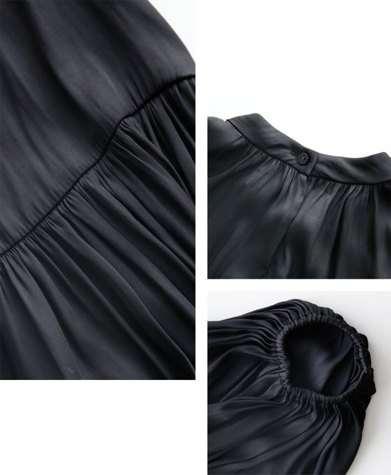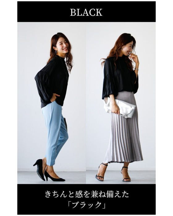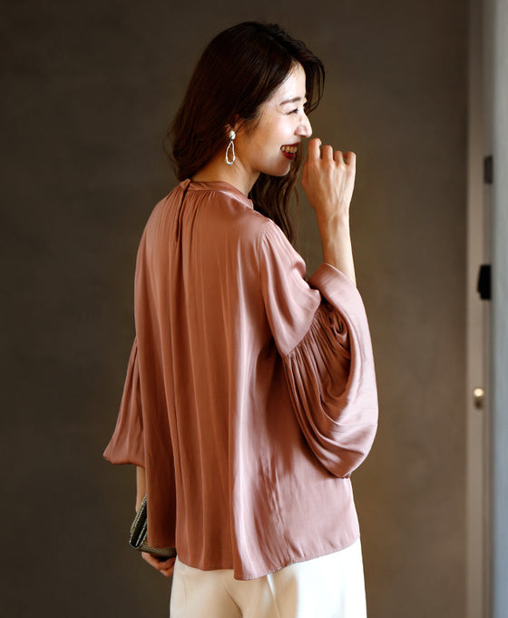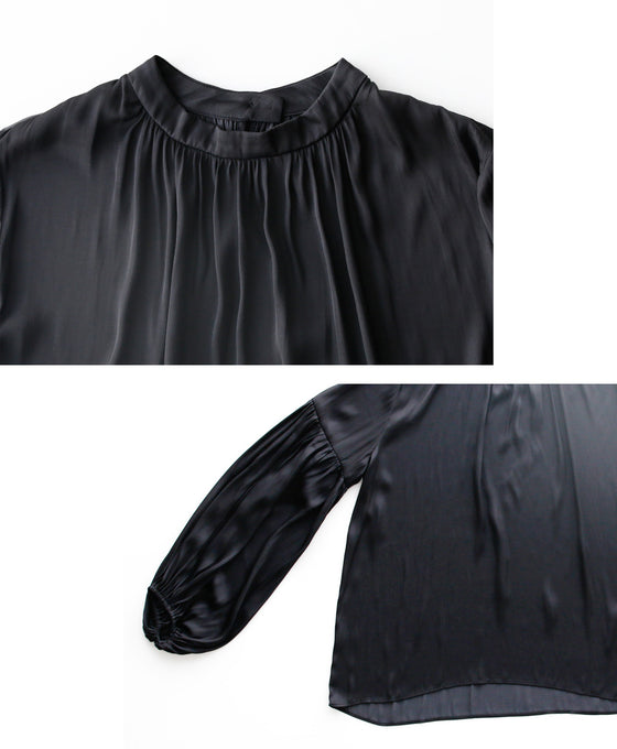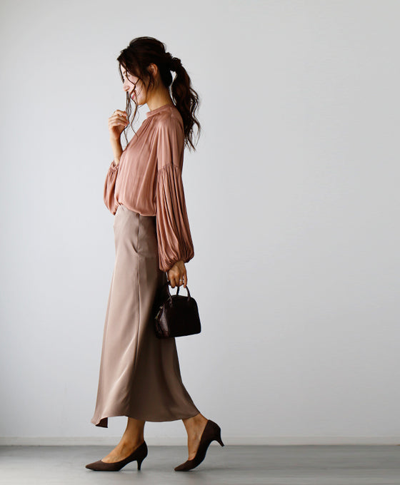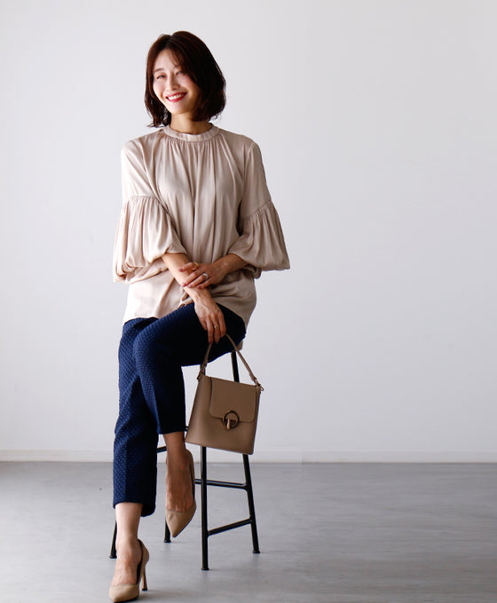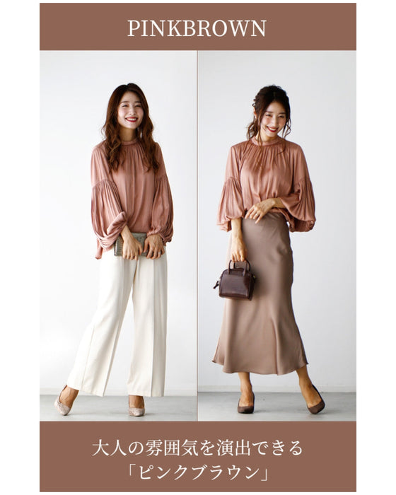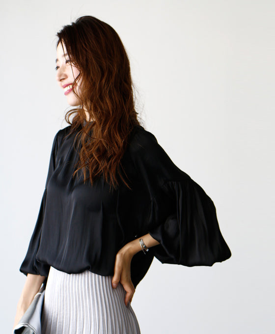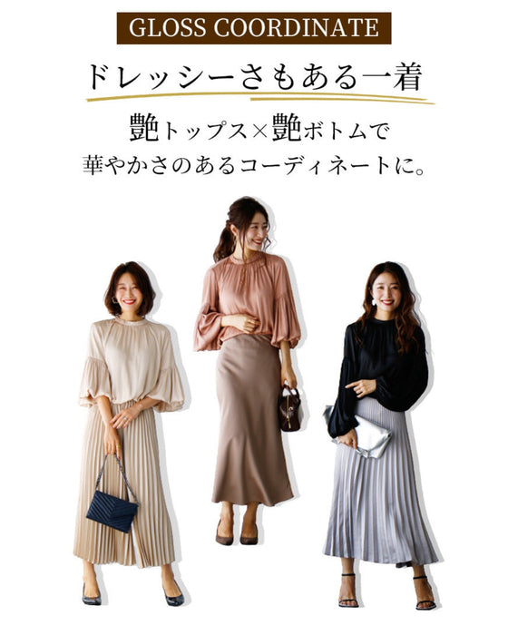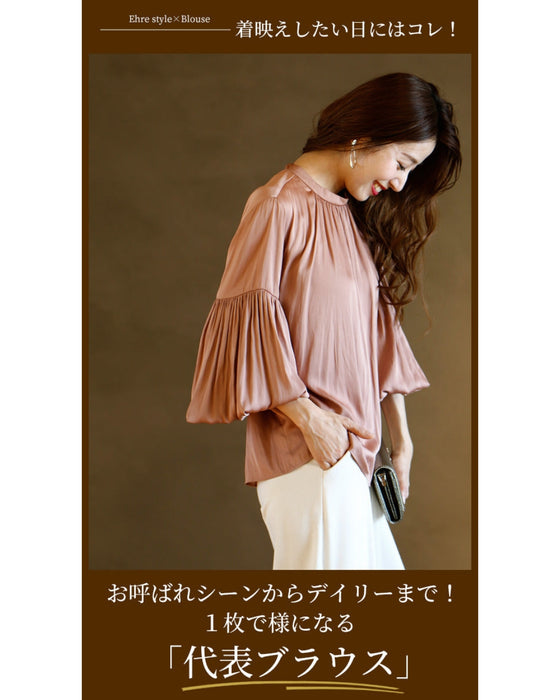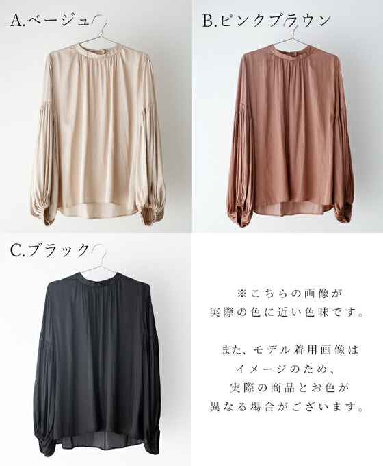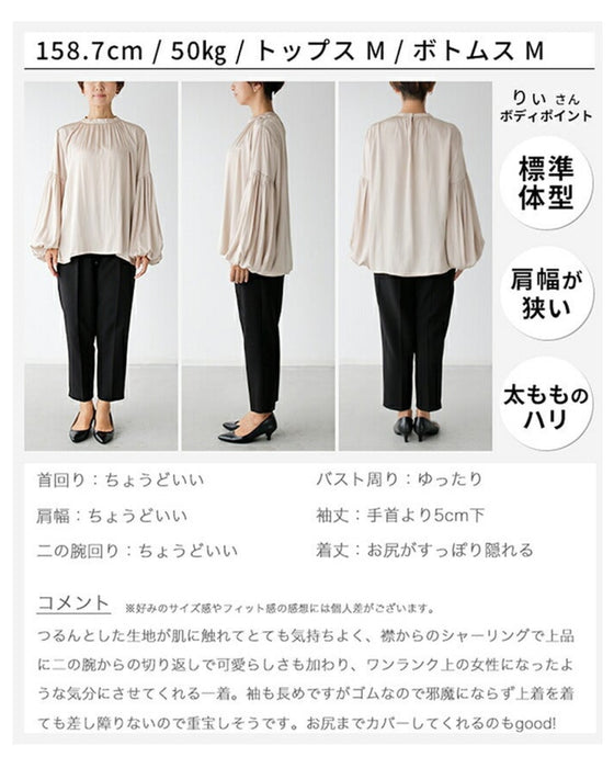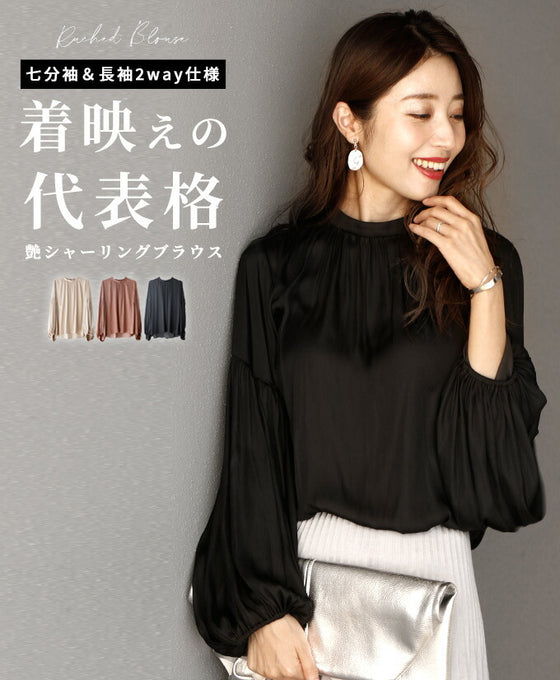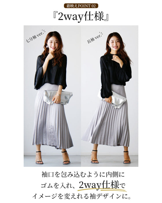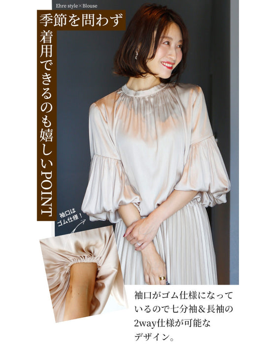 Tops, blouses, shirring, 2-way, glossy, subtle, long sleeves, short sleeves, daily, formal, dressy, beige, black, looks great, Ehre style, style, Ehre style, ladies, free size, free shipping, spring, summer, autumn, winter, petite, Ehrestyle, free size