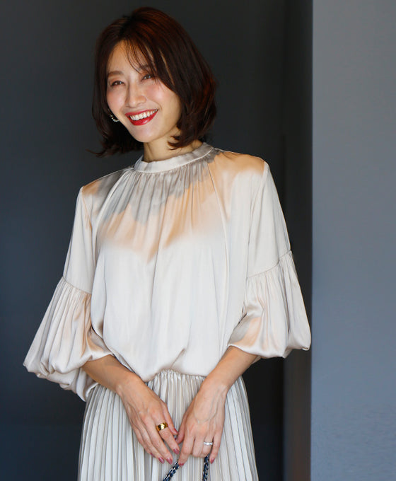 The sleeve design can be changed in two ways. Elastic is placed on the inside to wrap around the cuffs, and when you roll up the sleeves, you can create a fluffy short-sleeved style.