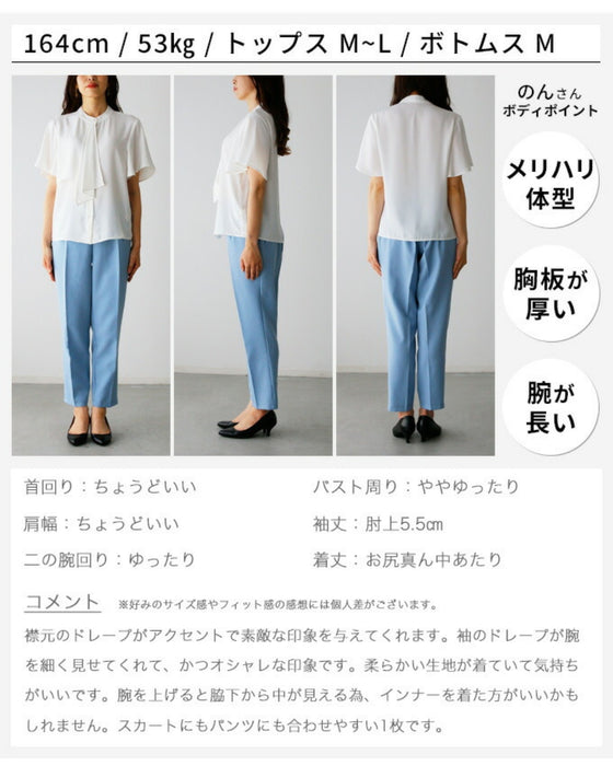 Ehre style original short-sleeved bowtie blouse that looks neat but not cute