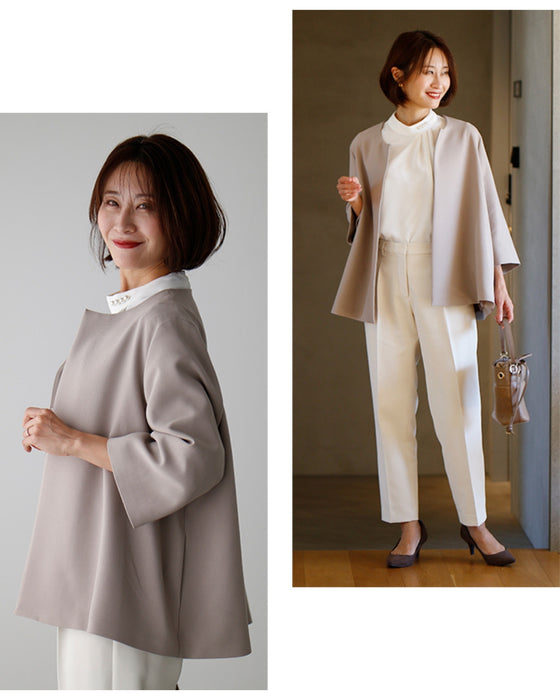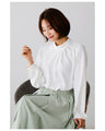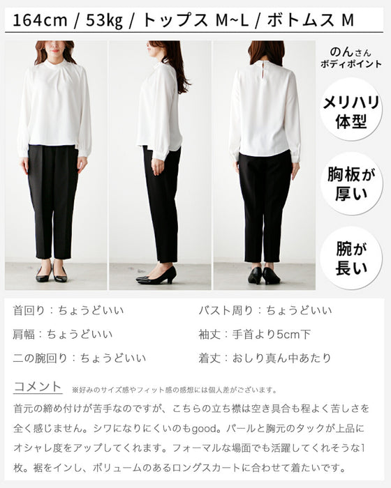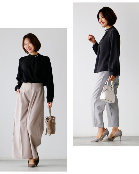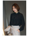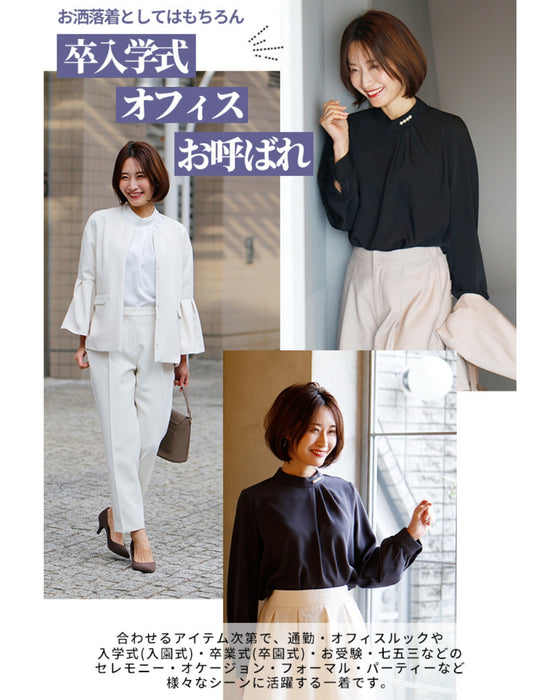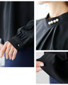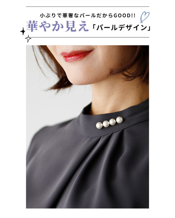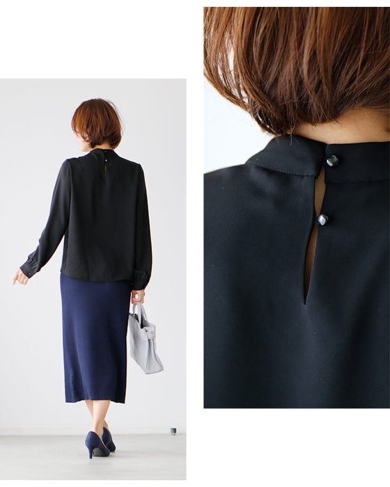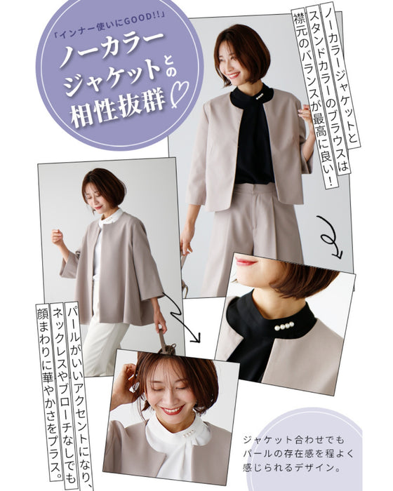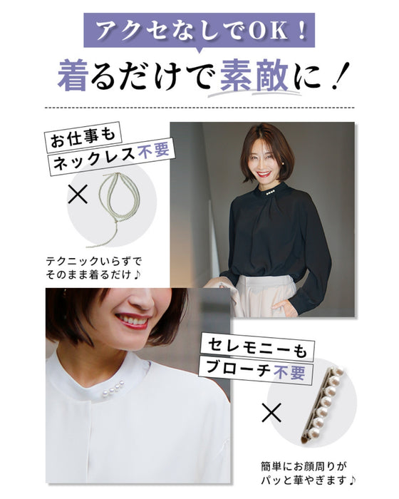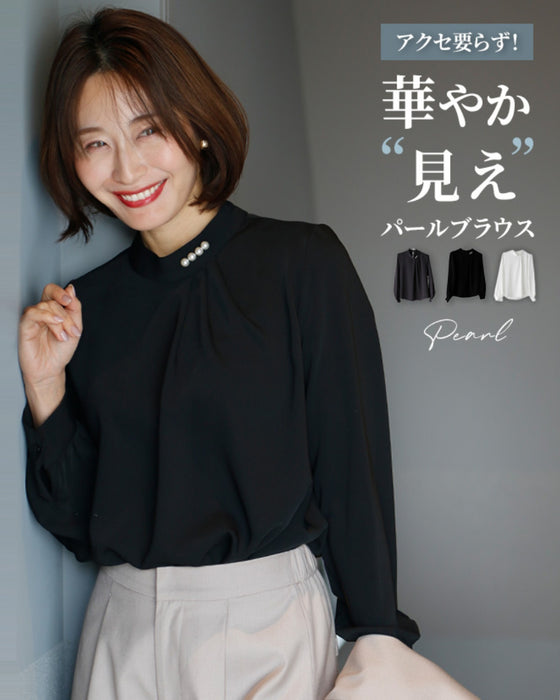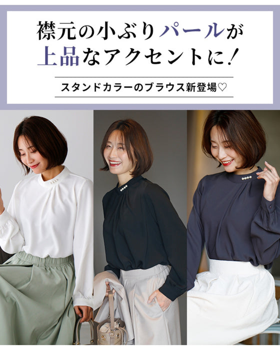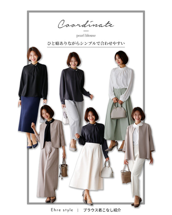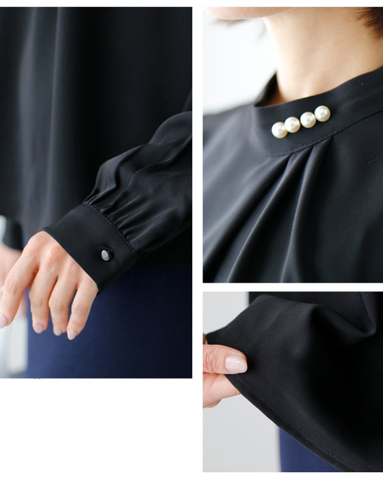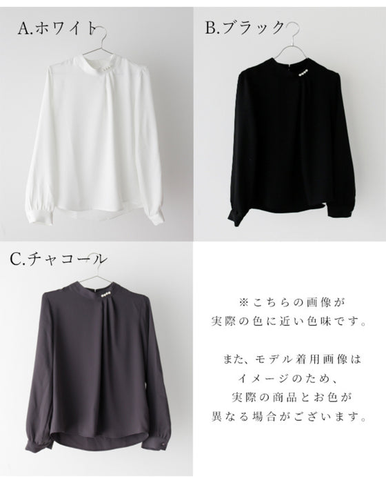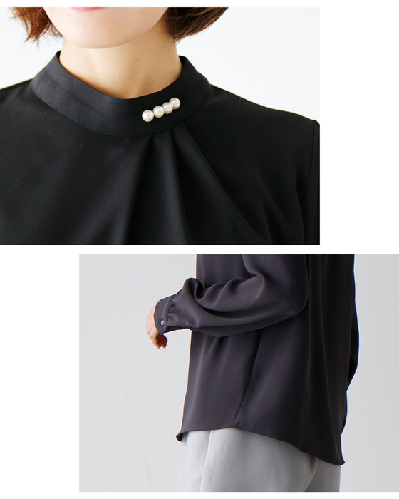 Blouse top pearl stand neck collar drape elegant blouse white black gray white charcoal black White Black charcoal Ceremony Graduation ceremony Entrance ceremony Invited Stylish Gorgeous Spring Autumn Winter Petite OK Ehrestyle Free size