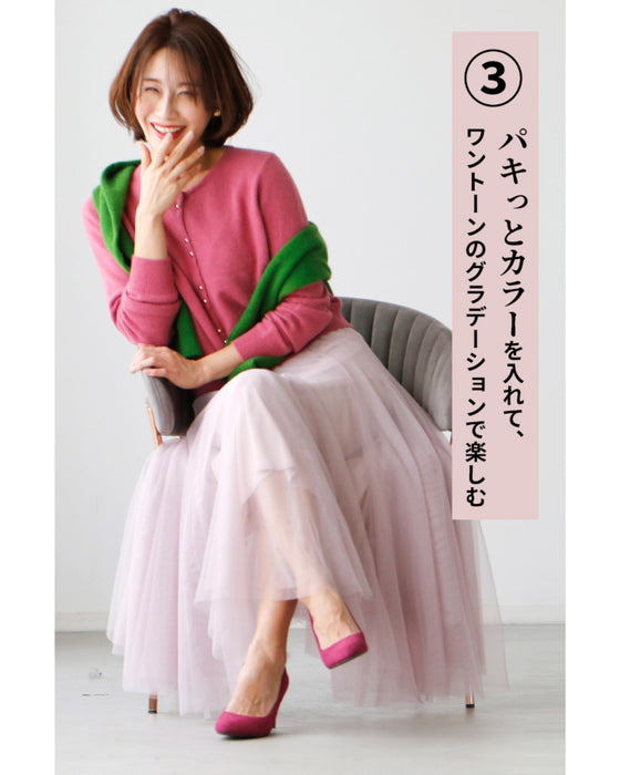 ③ Try adding some color. Combining it with a vivid color is also trendy. It's nice to use it as an accent color or to enjoy it with a one-tone gradation.